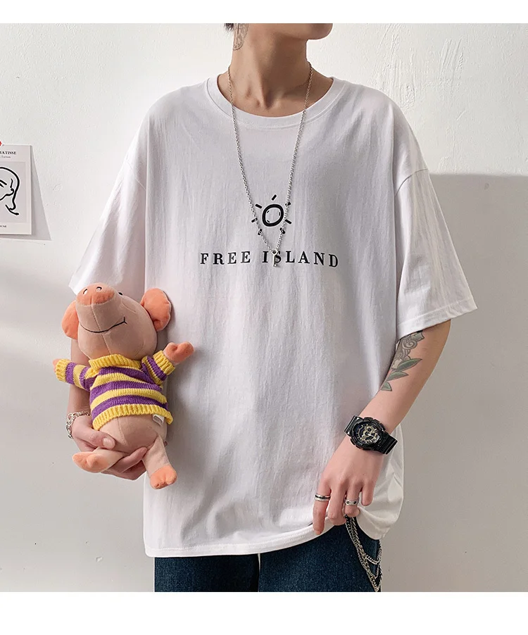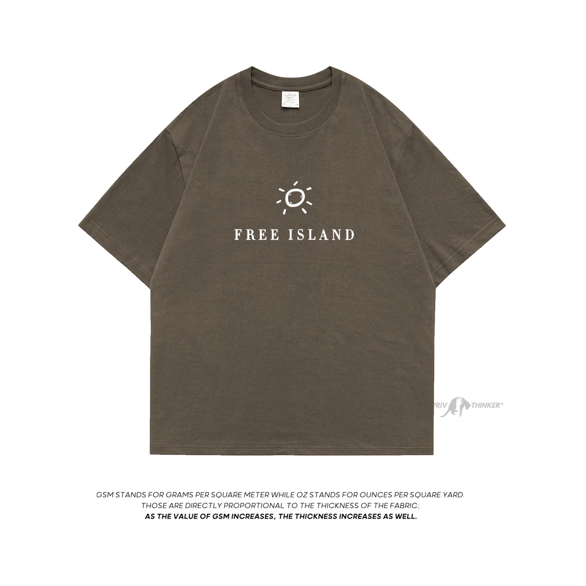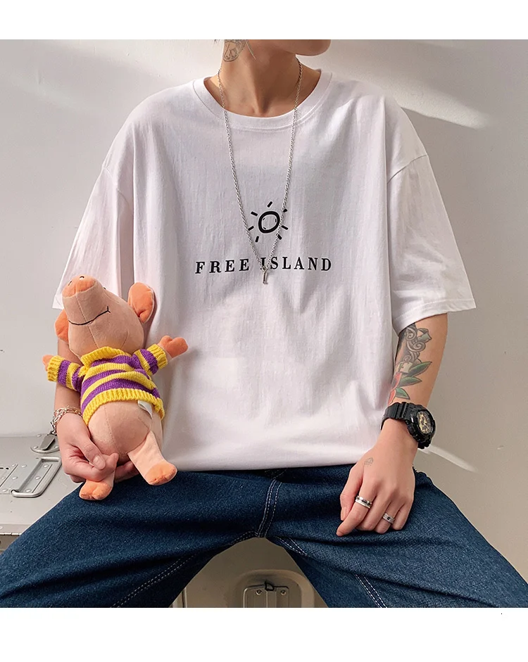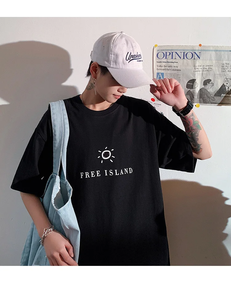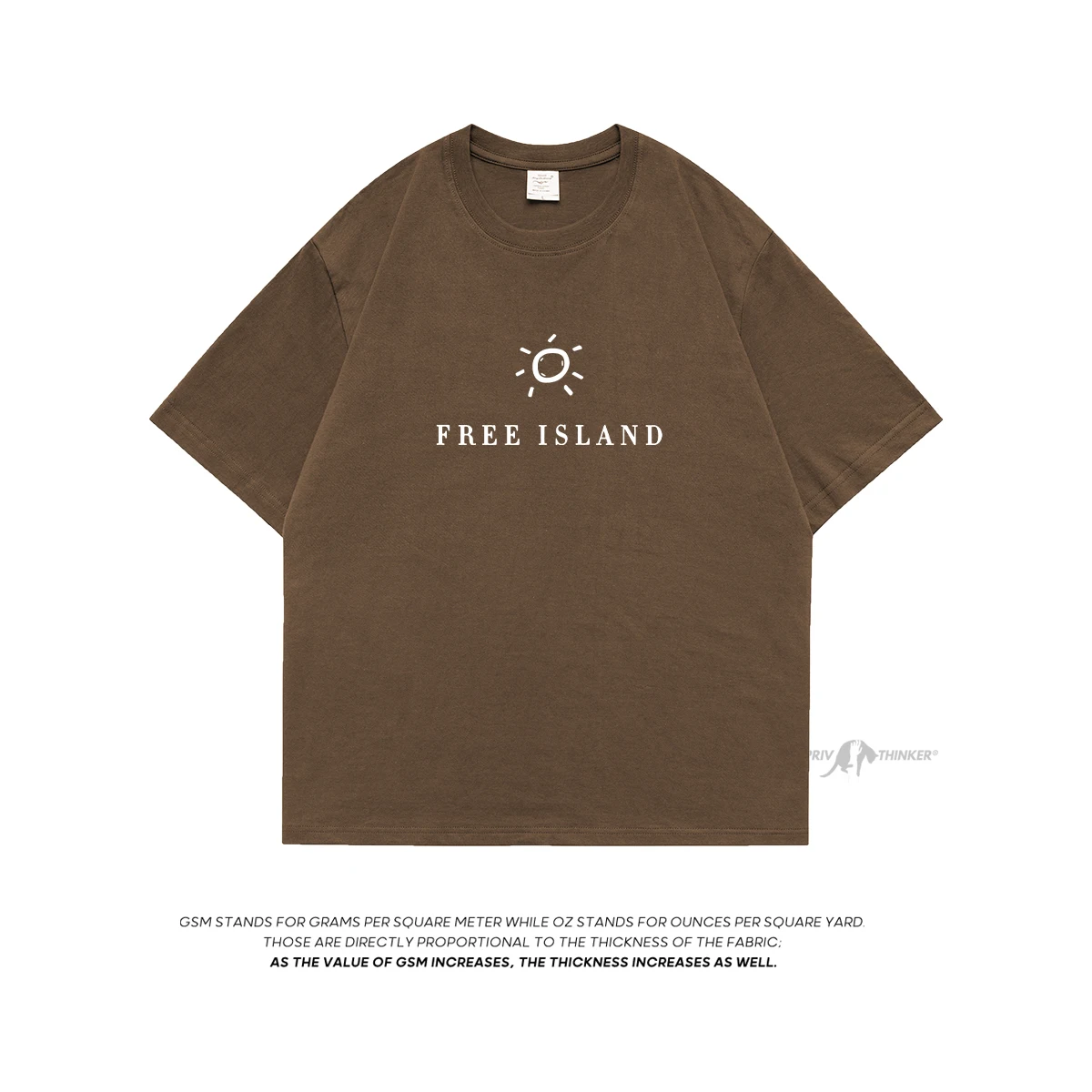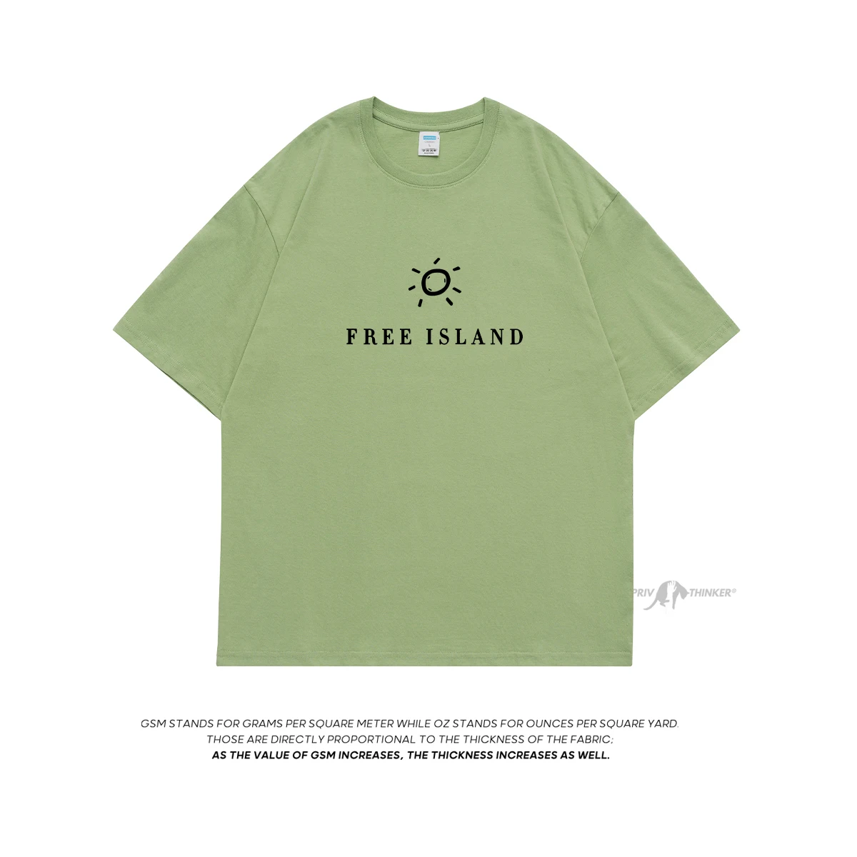 Free Island Pure Cotton Men Tshirt Short Sleeve Sun Graphic Oversize T-shirt Summer Man T shirt Men's Clothing