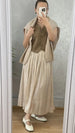 French Elegant Solid Silky Shiny Long Skirt Fashion Elastic Waist Satin Pleat Women Dress Spring Korean Chic A-line Ladies Skirt