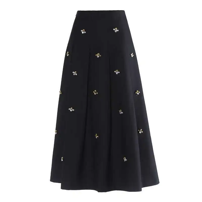 French Solid Ruffled Skirt Diamonds For Women High Wasit Causal Loose Mid Length Skirts Female Fashion New