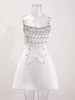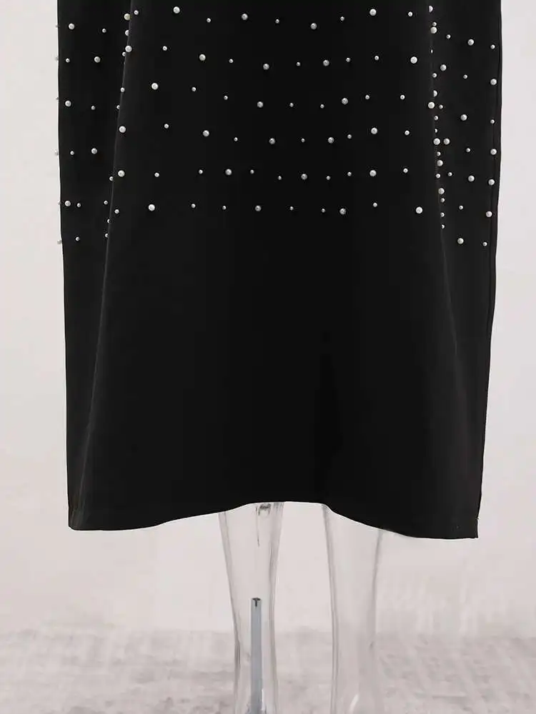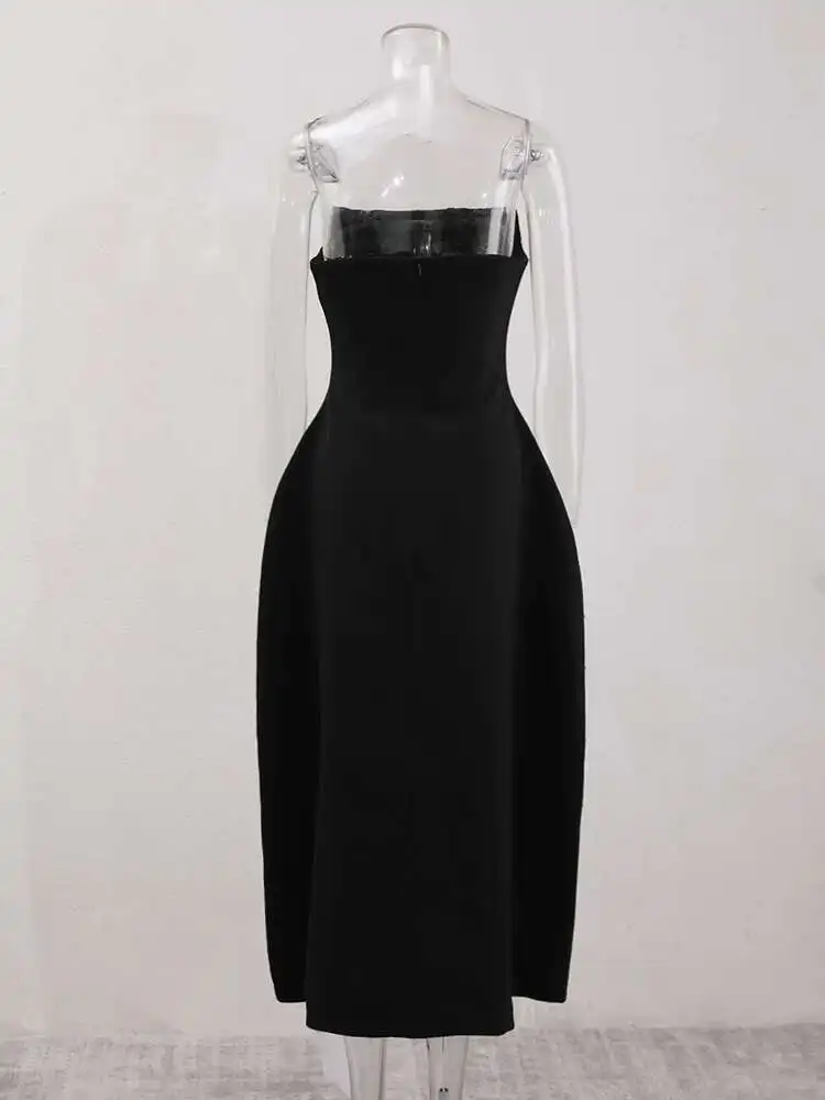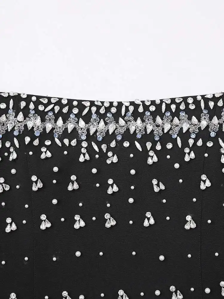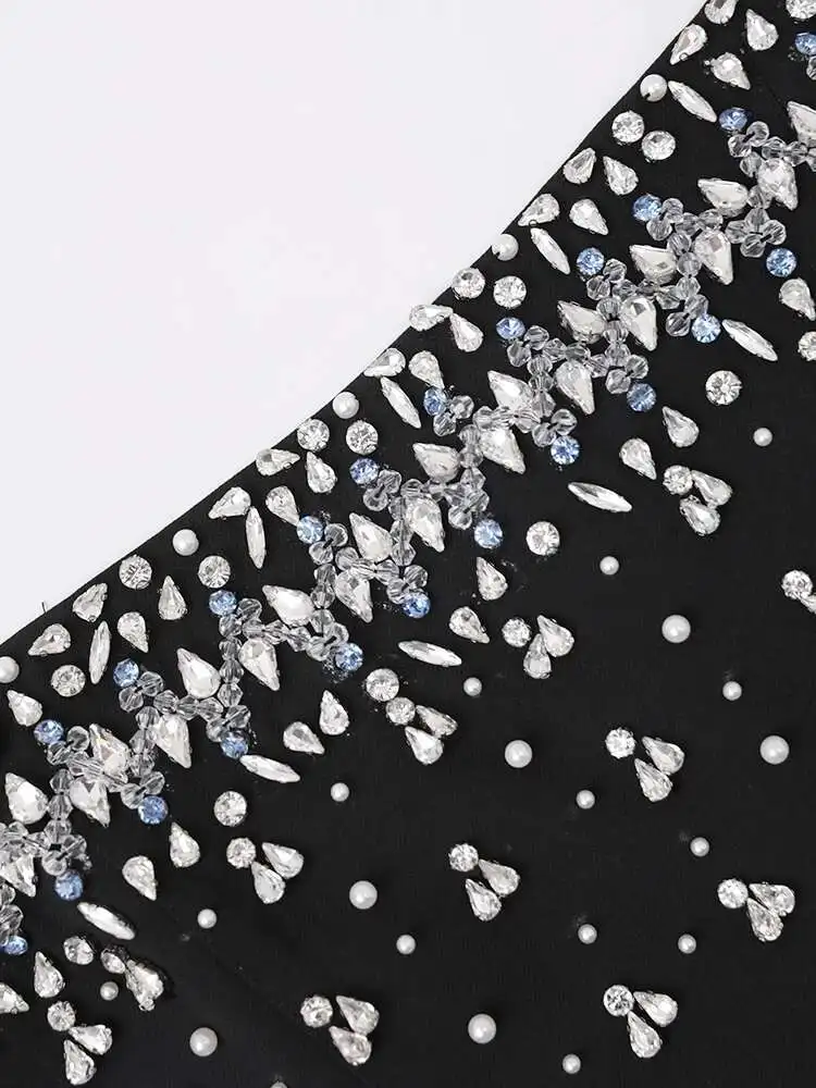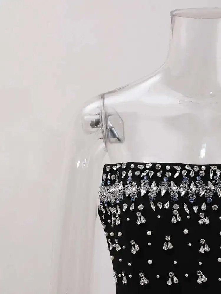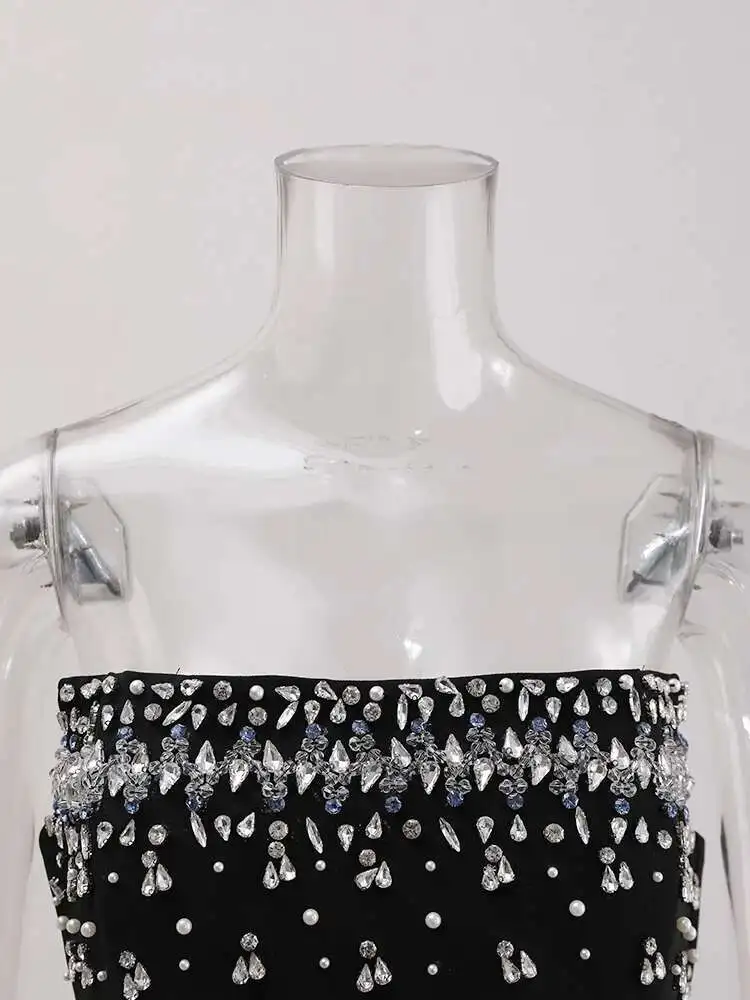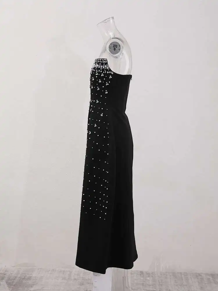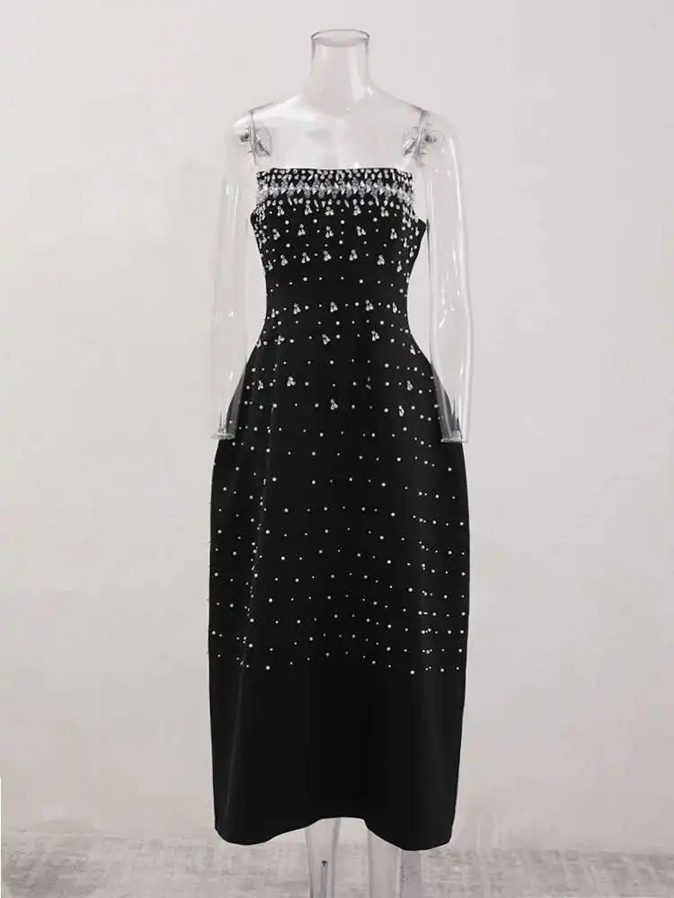 French Style Diamond Spliced Party Maxi Dresses For Women Slash Neck Sleeveless High Waist Black Female Dress 2025