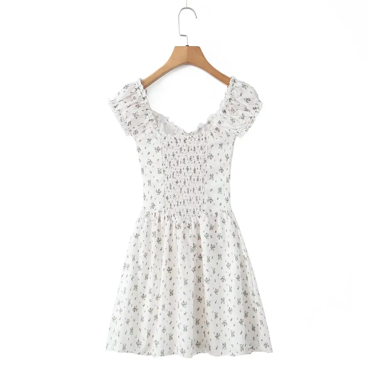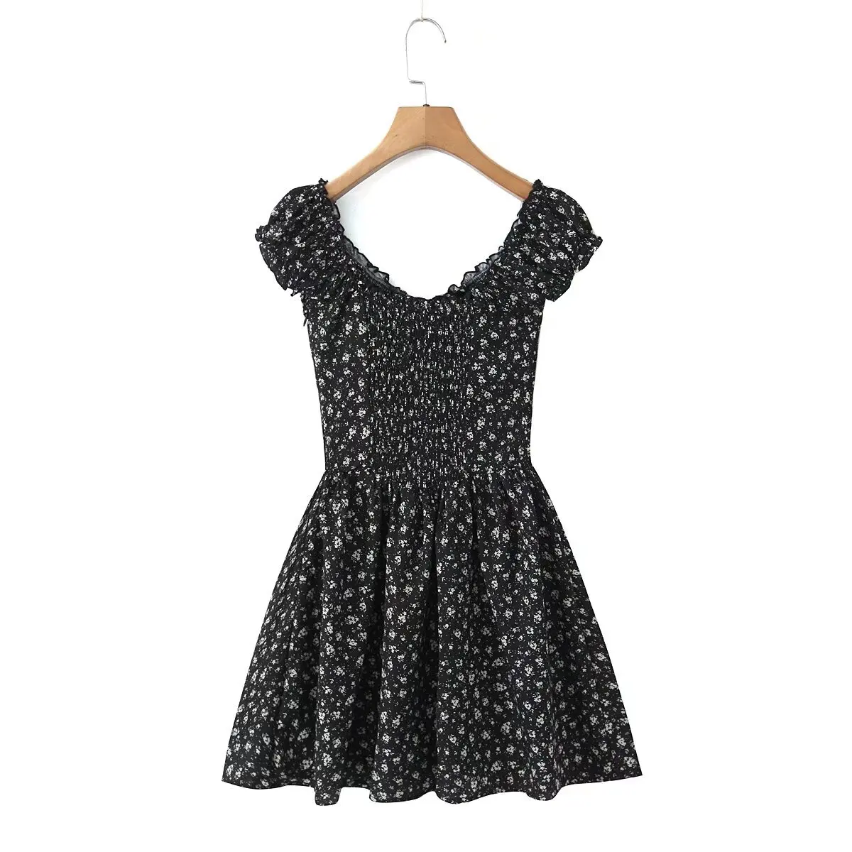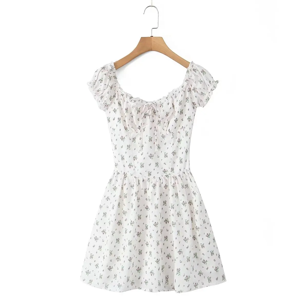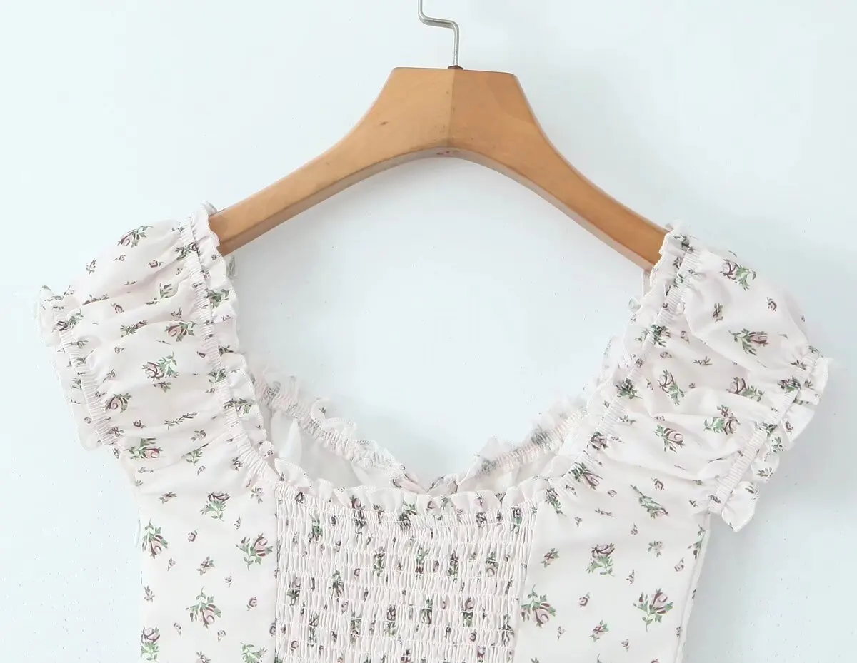 French Style Floral Print Dress Women Sexy V Neck Short Sleeve A-line Mini Summer Dresses Casual Holiday Robe