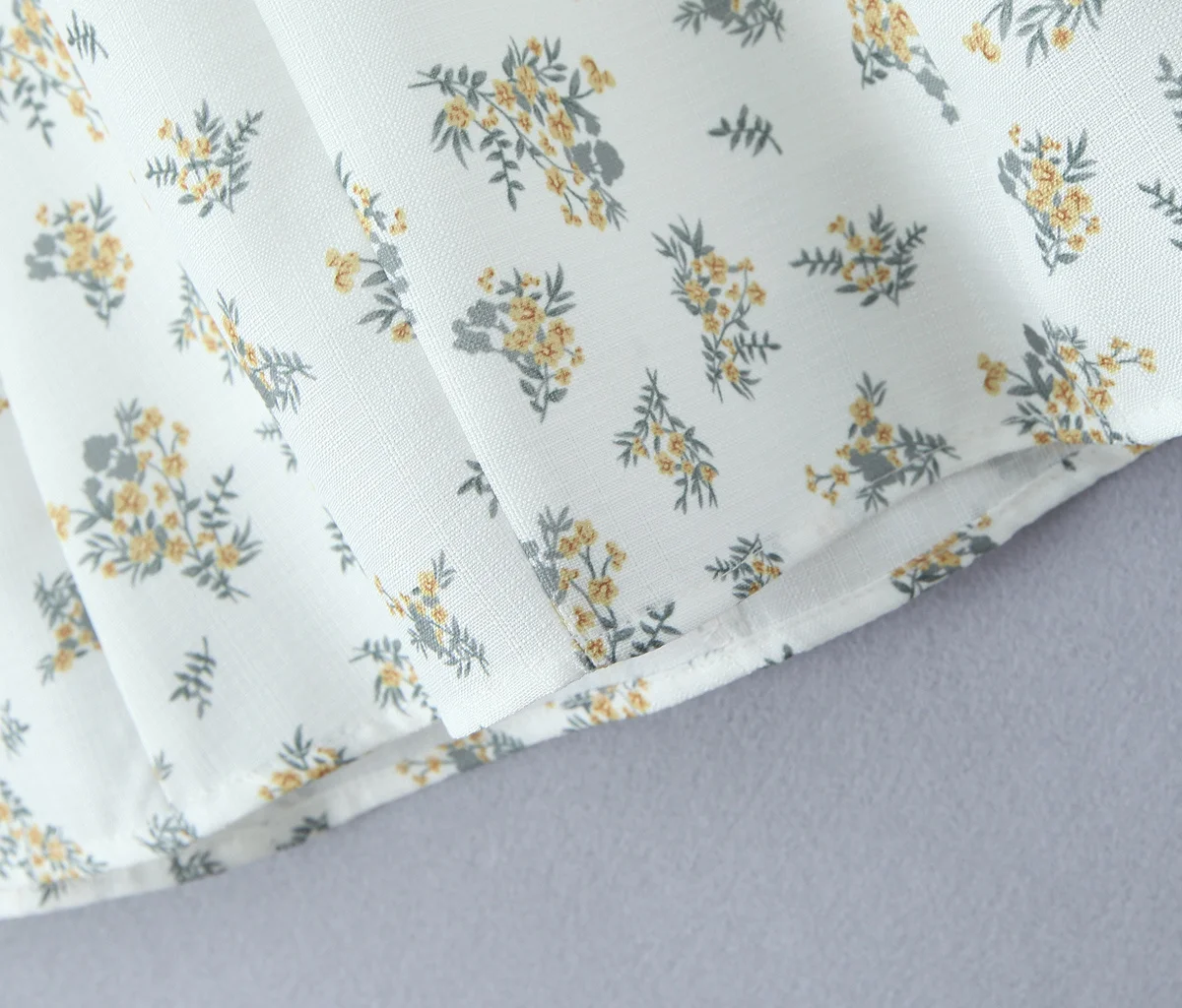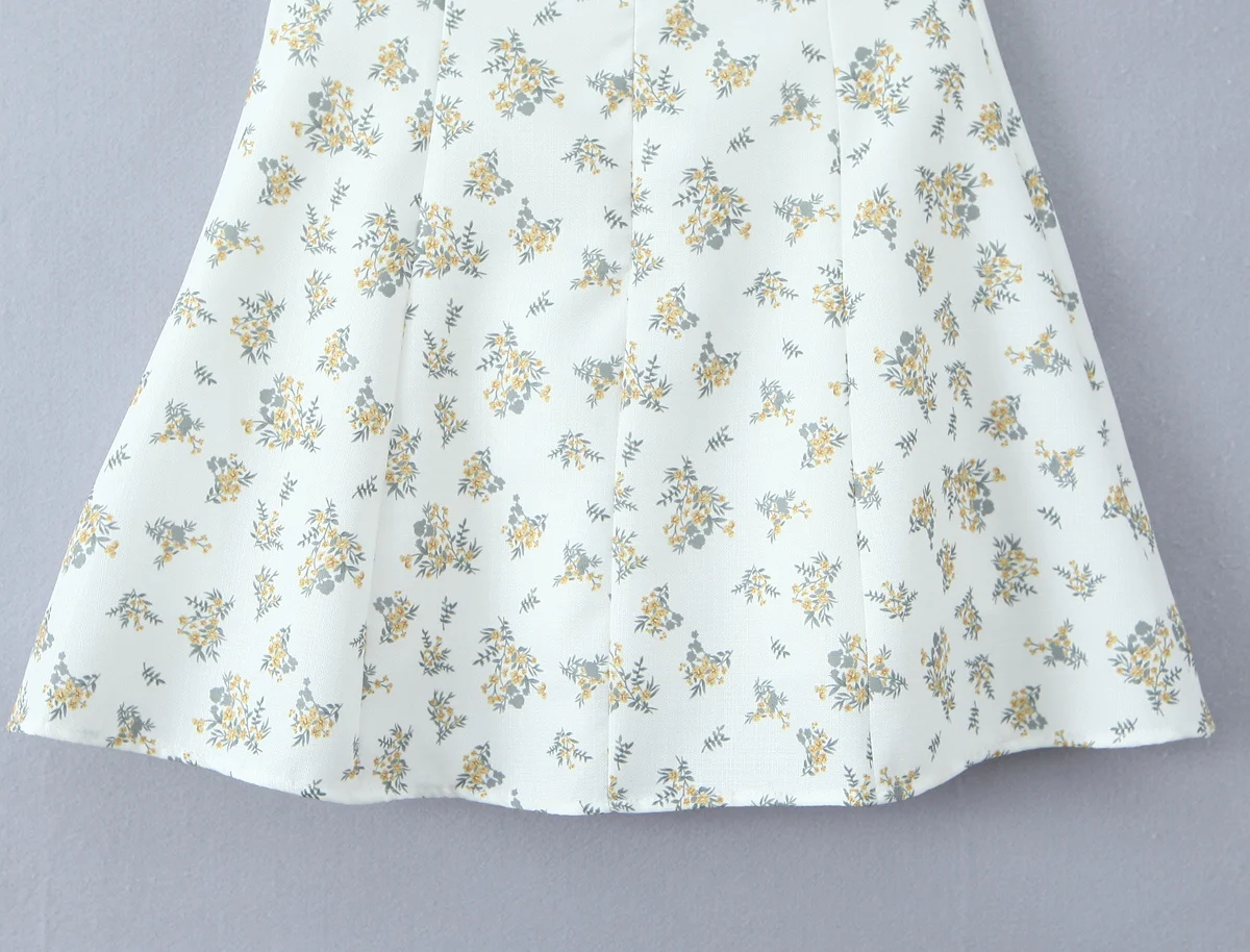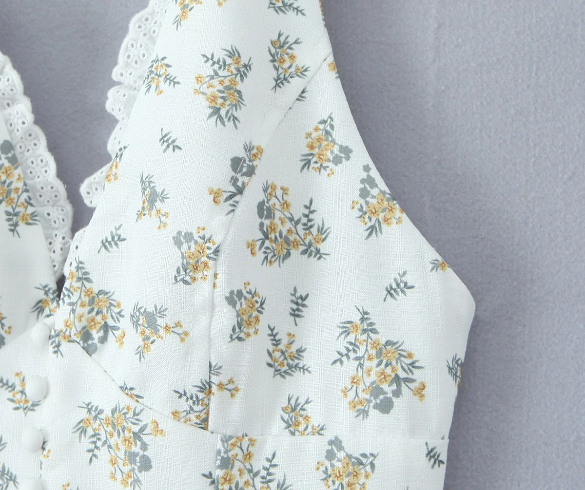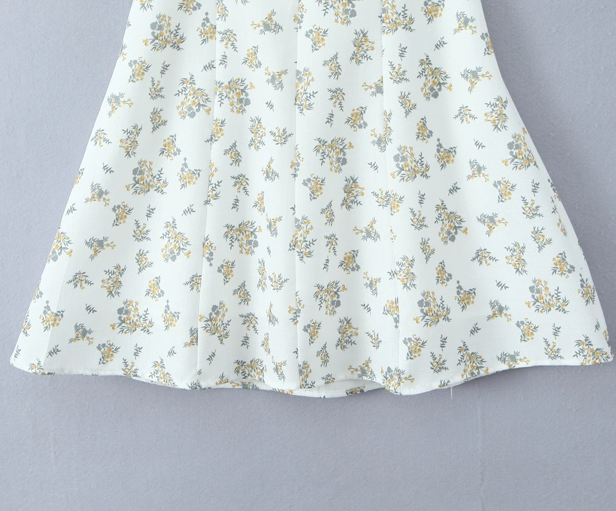 French Style Vintage Print Halter Dress Women Lace Trim A-line Short Summer Dresses Sweet Robe Holiday Vestidos