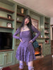 Gothic Black Lace Dress Women Y2K Fall Vintage Elegant Square Collar Purple Mini Dress Streetwear Sexy Slim Party Vestidos New