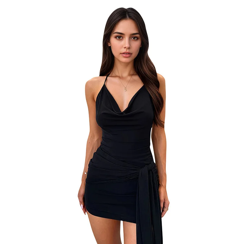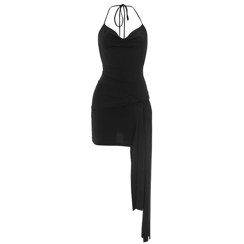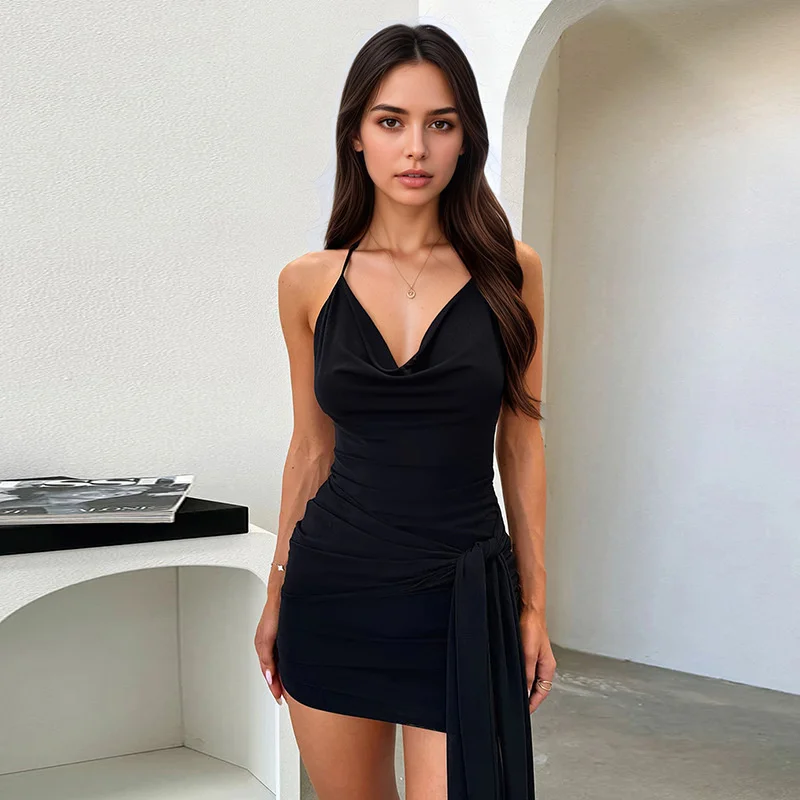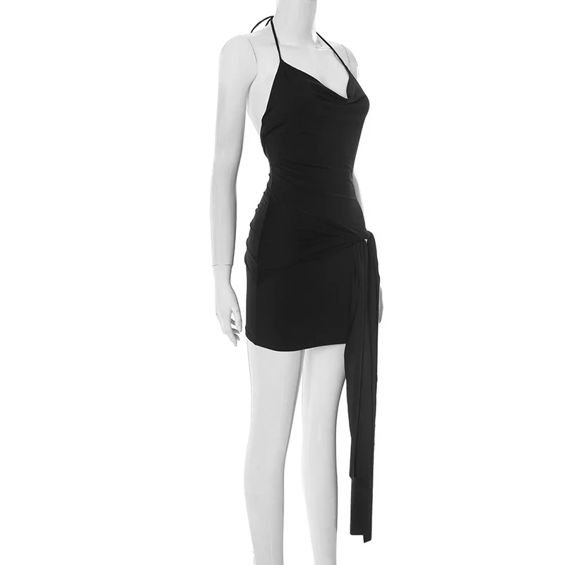 Halter Backless Draped Sexy Mini Dress Women Robe Fashion Off-shoulder Sleeveless Backless Bodycon Ruched Club Dresses