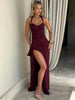 Halter Backless Sexy Maxi Dress Women Fashion Lace-up Sleeveless High Waist Thigh High Split Bodycon Evening Club Dress