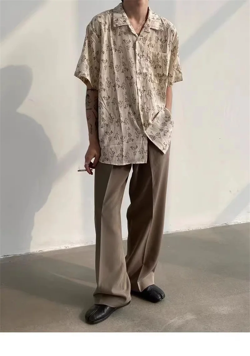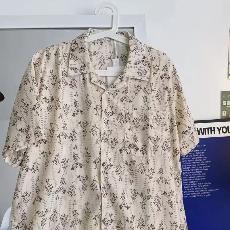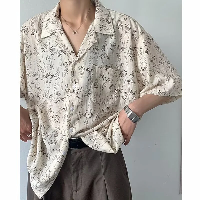 Hawaiian Shirt for Men Small Flower Cuba Collar Vintage Holiday Beach Couple Clothing Male Top Summer