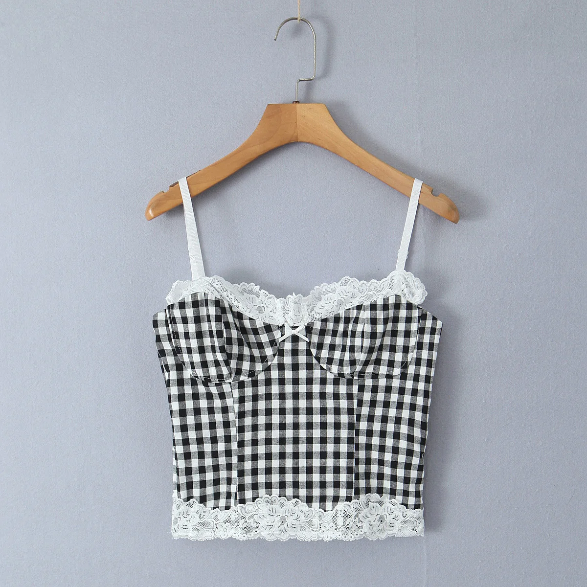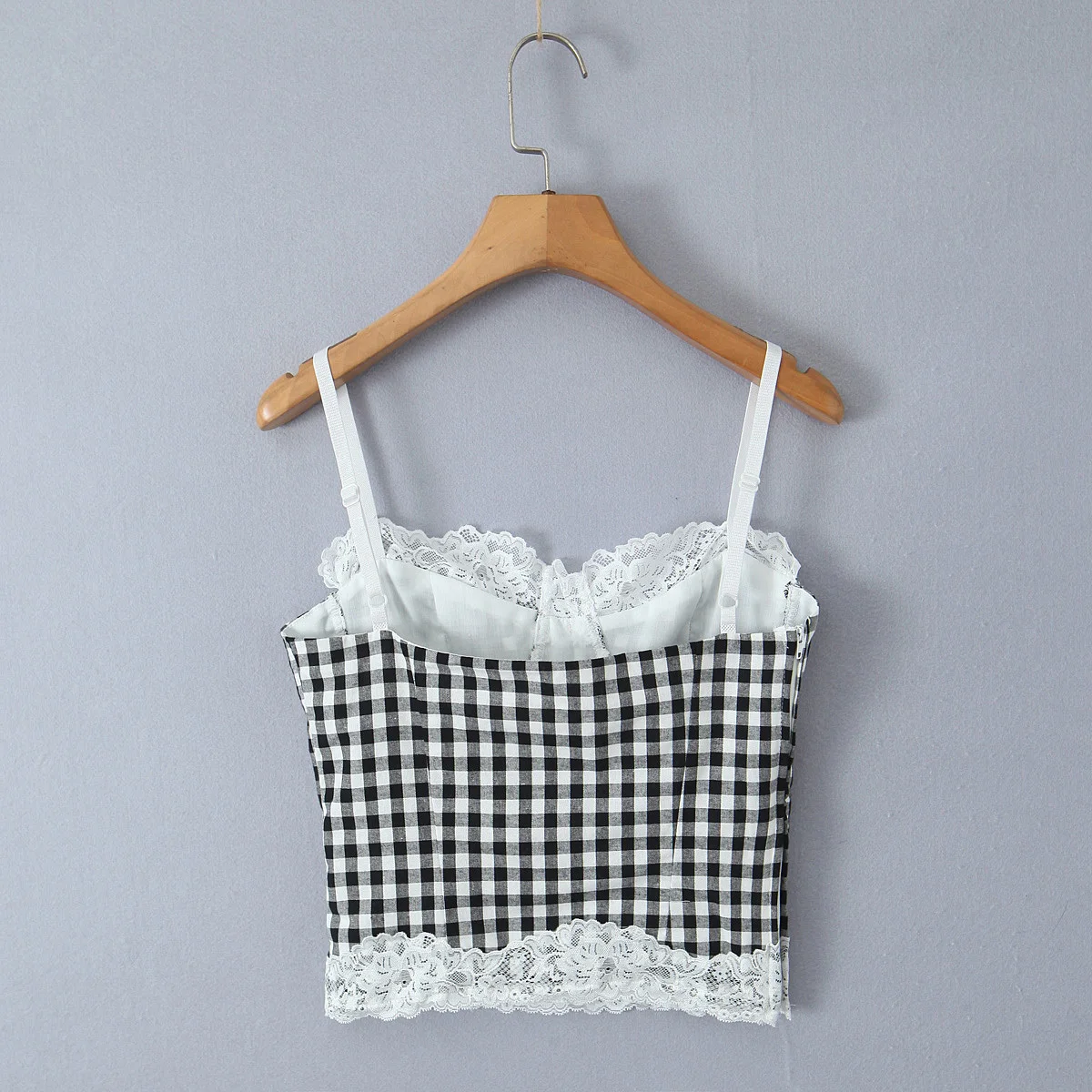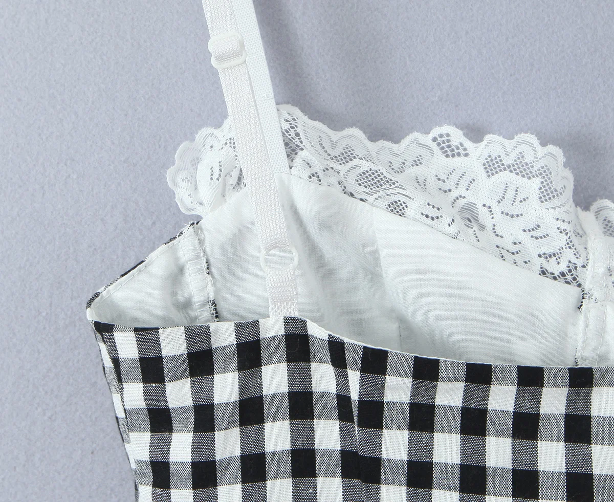 High Street Women Lace Patchwork Plaid Camis