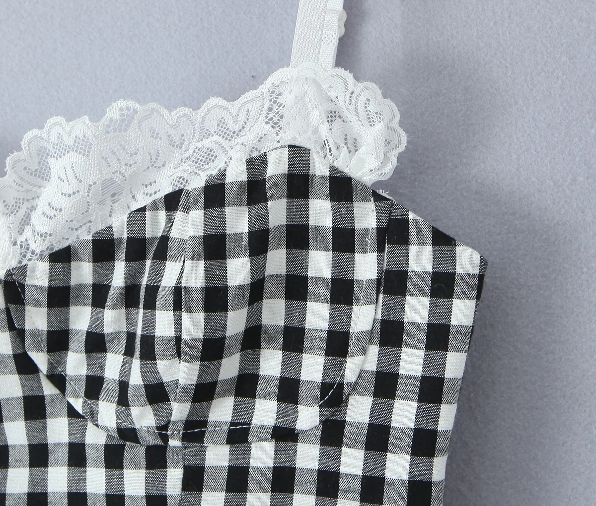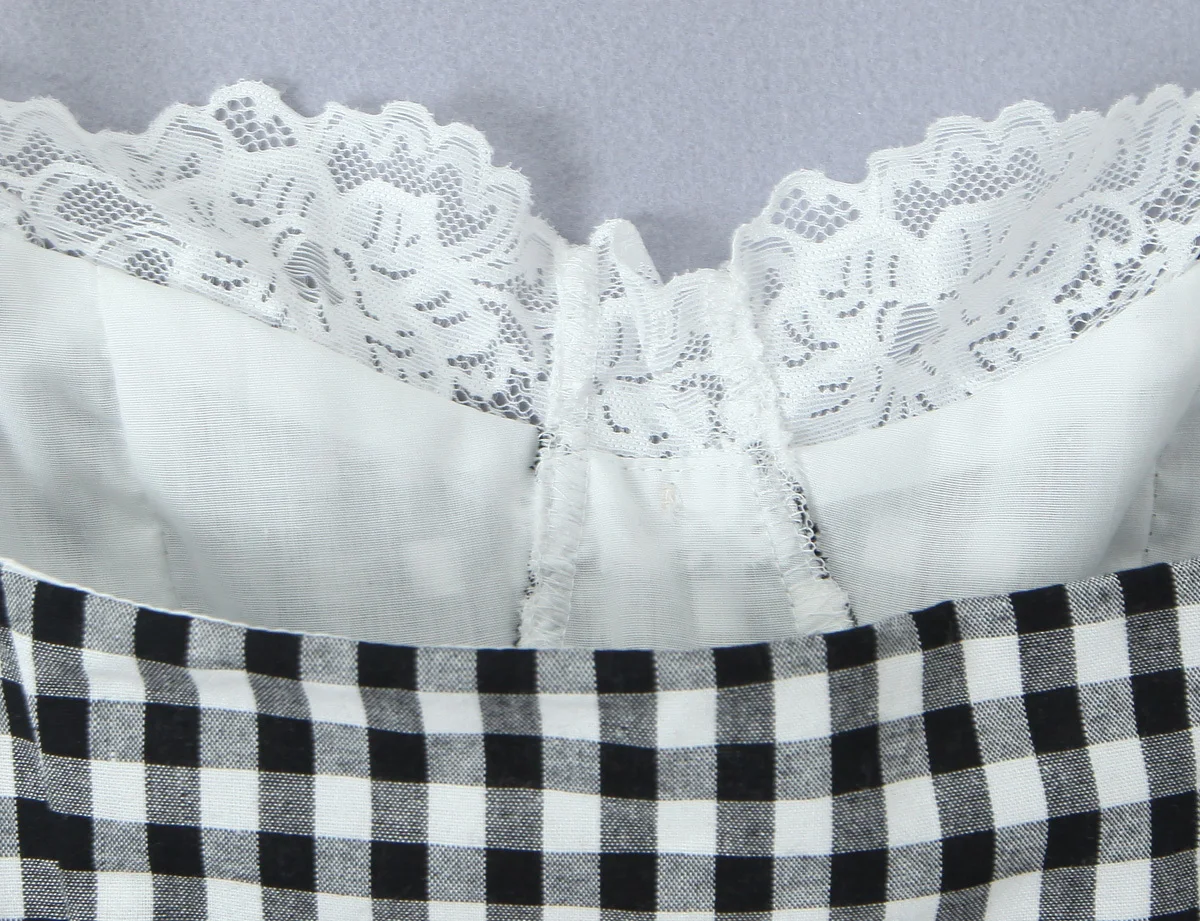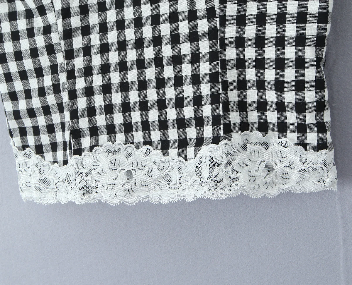 High Street Women Lace Patchwork Plaid Camis