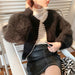 Imitation Mink Soft Women's Cardigan Temperament Pearls Detor Crew Neck Cardigan Woman Autumn Winter Long Sleeve Outwear Lady