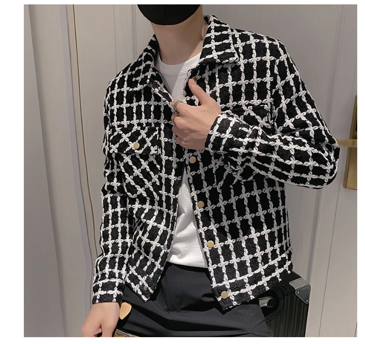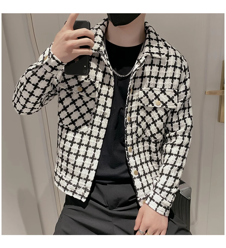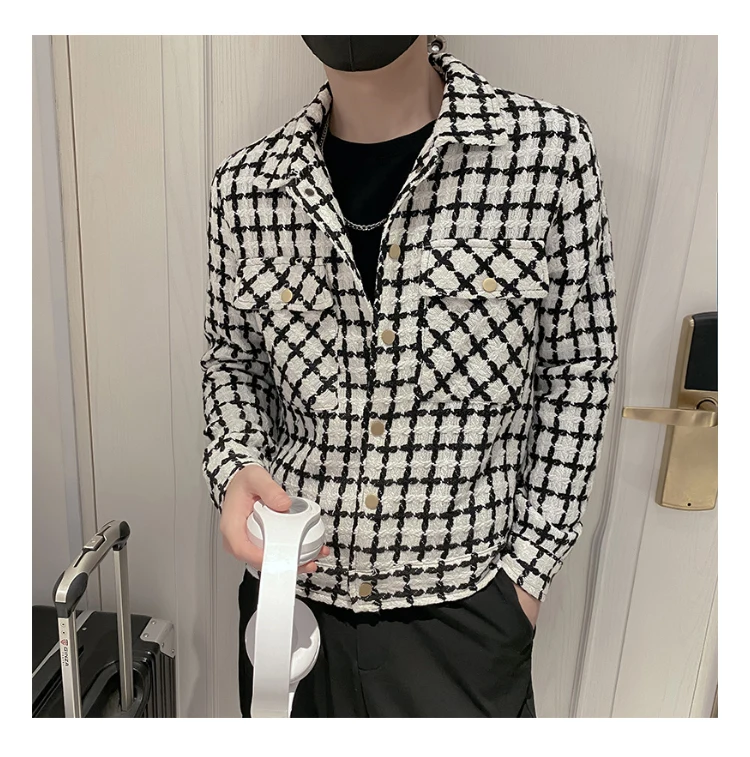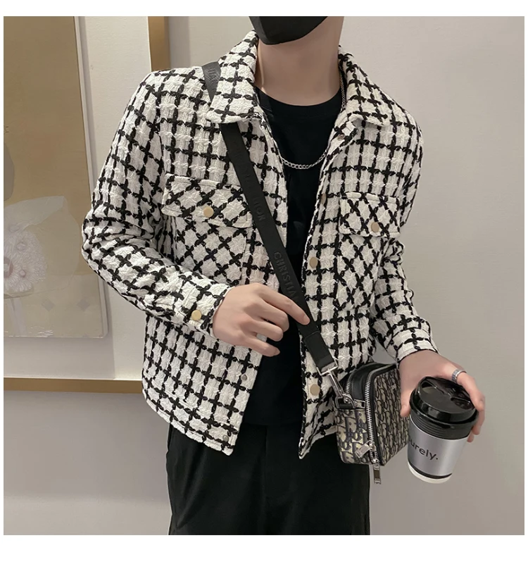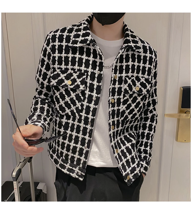 Jackets Men Spring Fashion Pocket Plaid Handsome Outwear Coats Korean Style Cropped Simple Harajuku All-match Daily Plus Size voguable