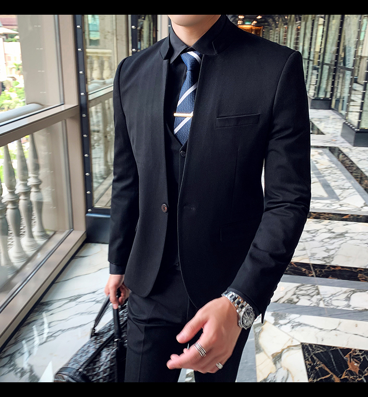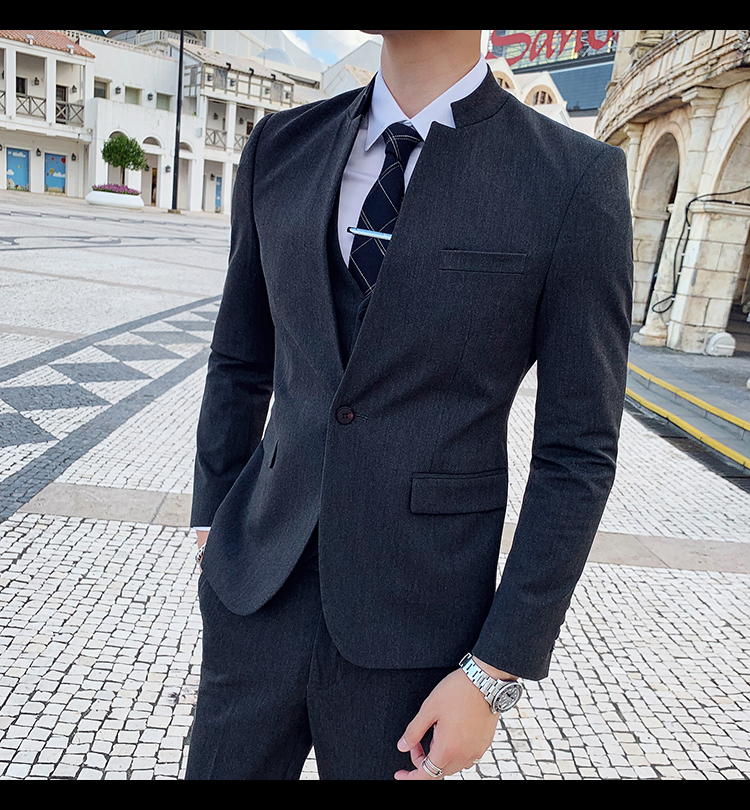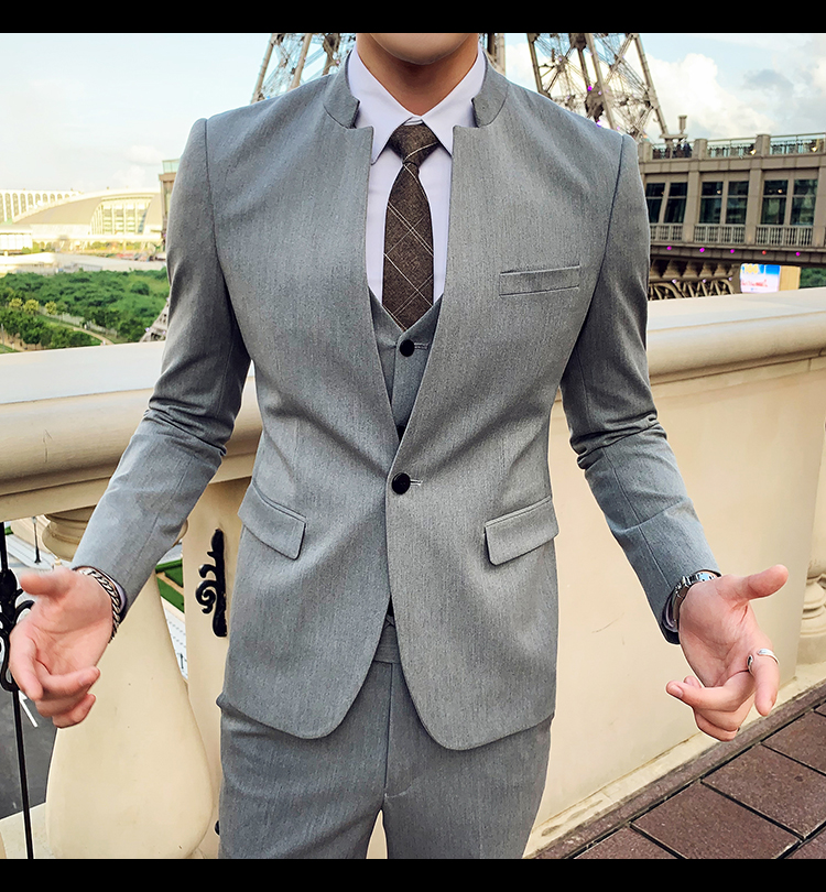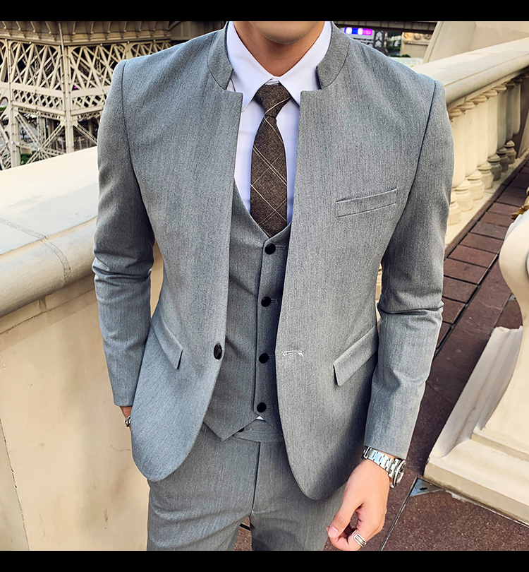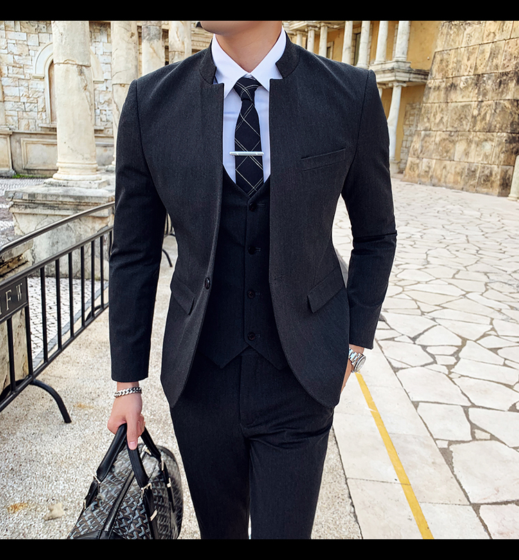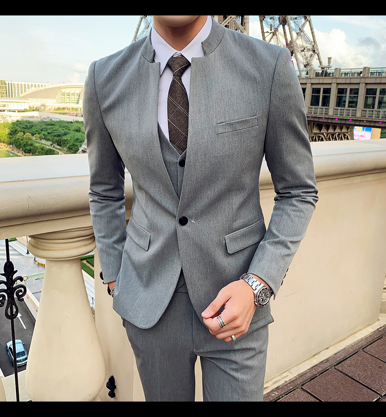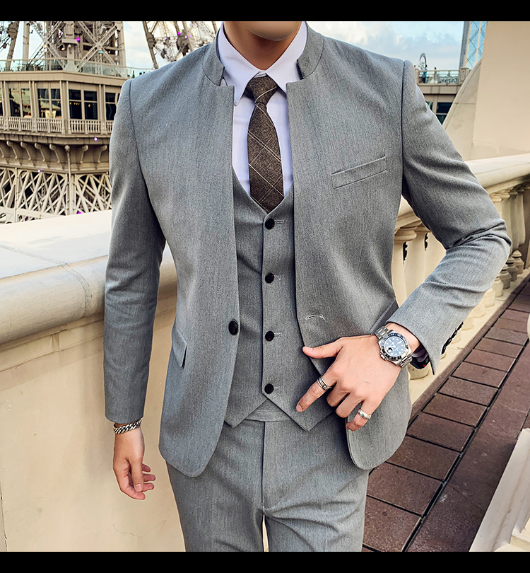 (Jackets+Vest+Pants) Sinicism Men's stand Collar High Quality Suits Male Slim Fit Solid Color Business Tuxedo Man Casual Blazers voguable