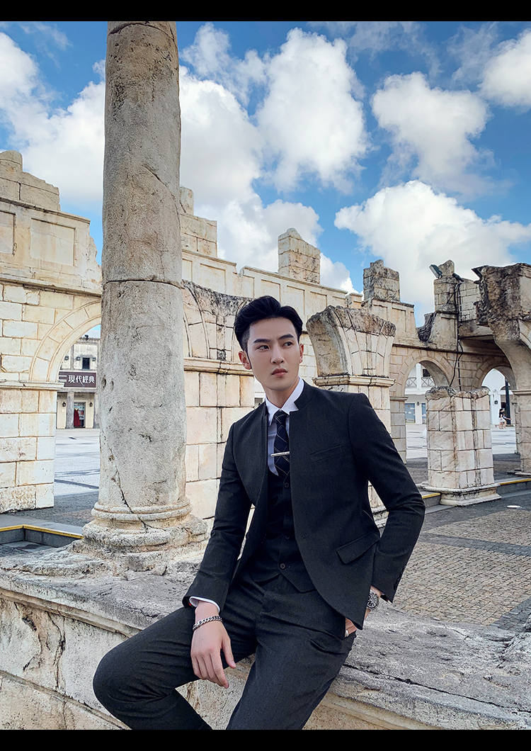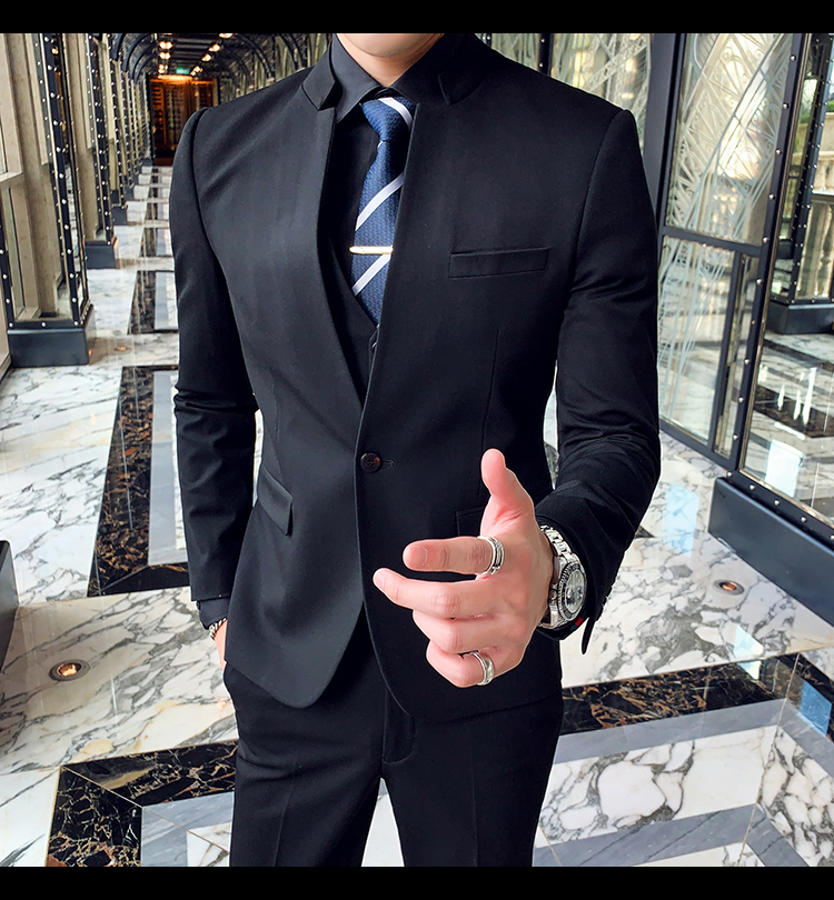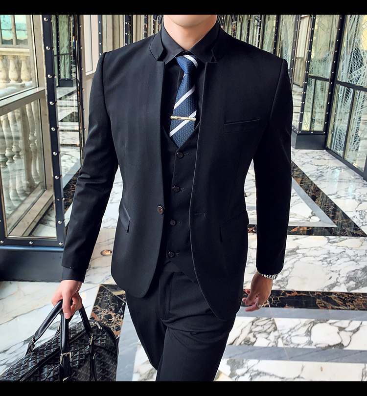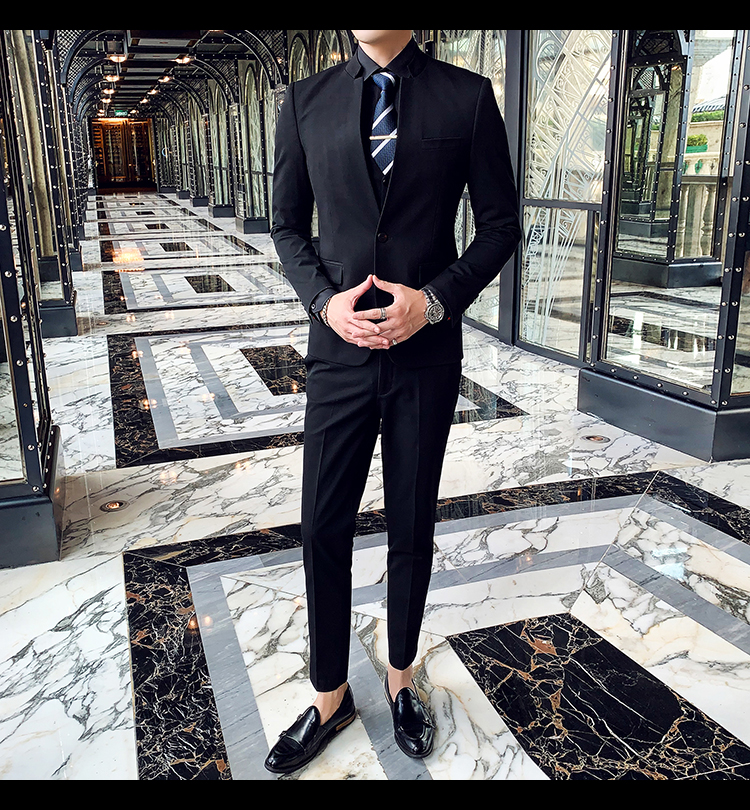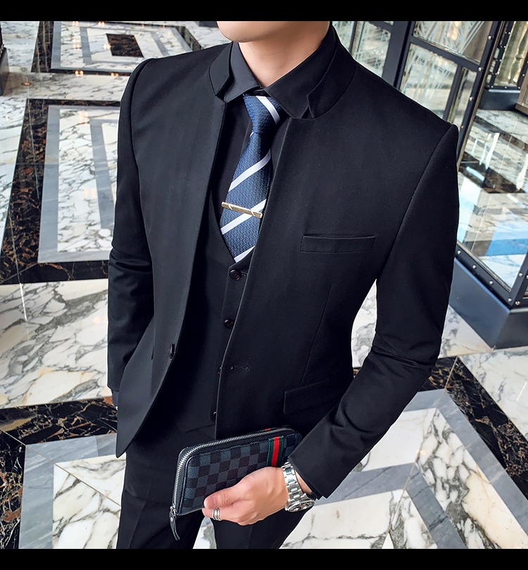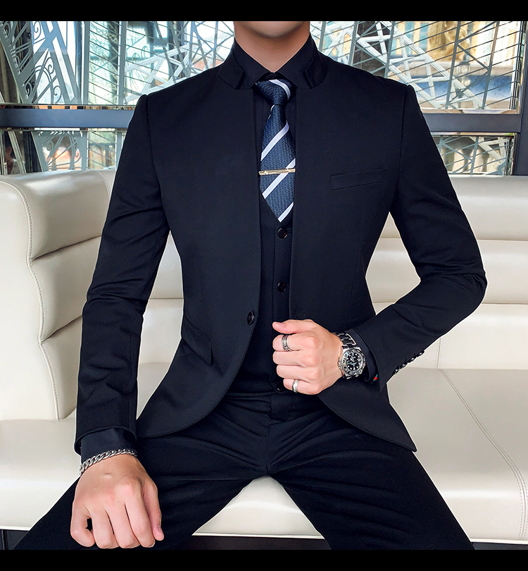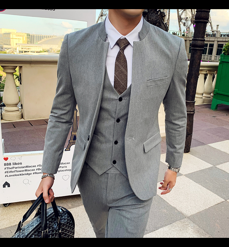 (Jackets+Vest+Pants) Sinicism Men's stand Collar High Quality Suits Male Slim Fit Solid Color Business Tuxedo Man Casual Blazers voguable