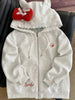 Kawaii Print Bow Hoodies Women Sweet Lace Patchwork Long Sleeve Cute Sweatshirts Japan Loose Pockets Letter Female Zipper Tops