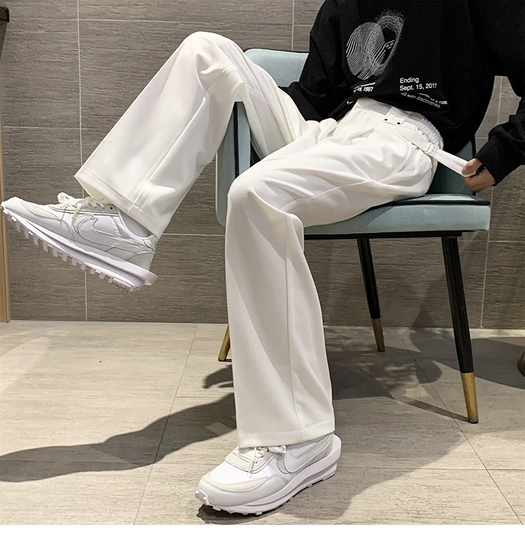 Khaki Black White Suit Pants Men's Fashion Business Society Mens Dress Pants Korean Casual Wide-leg Pants Men Straight Trousers