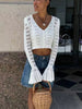 Knitwear Hollow Out Sweater Cardigan Women V-Neck Long Sleeve See-Through Cropped Top Summer Knit Patchwork Cardigan Top