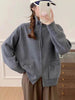 Korean Bow Cardigan Women Lazy Wind Double Zipper Long Sleeve Knitted Jacket Vintage Sweet Casual Preppy Style Tops Coat