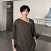 Korean Style Men's T-shirts Short Sleeve Casual Lace-up Design Solid Color Tees Hollow Out Loose Male Tops Summer 9W3719