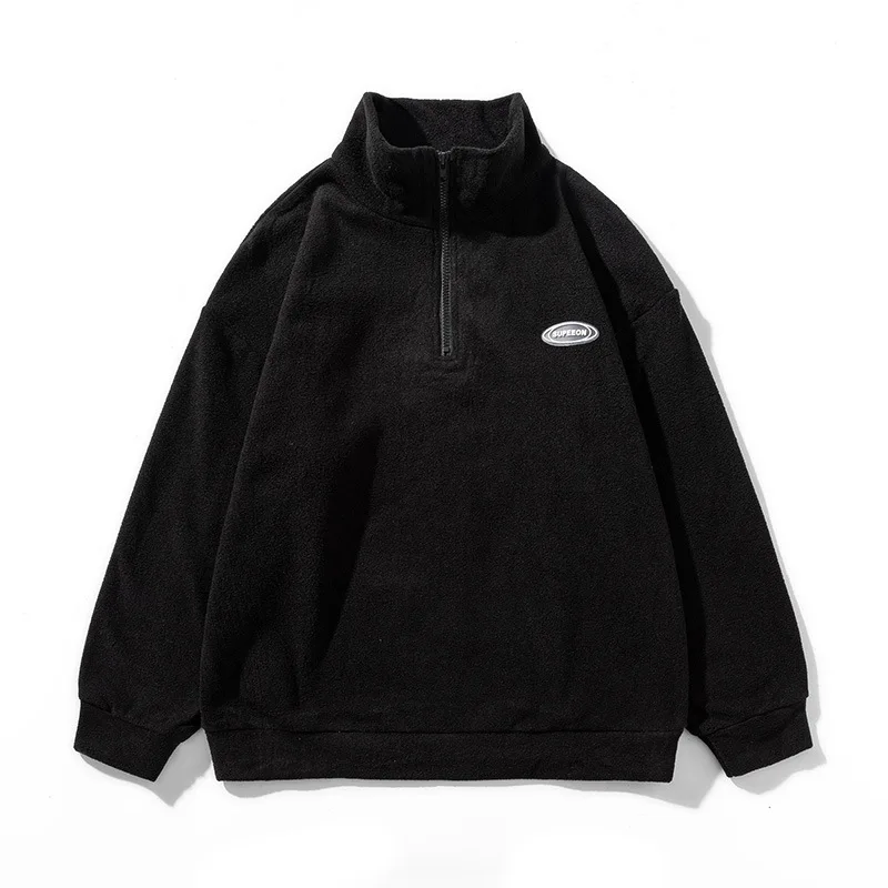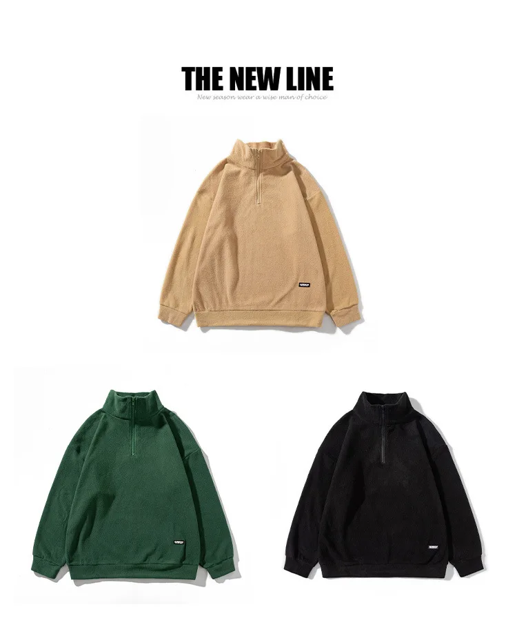 Korean Version Polar Fleece Base Tops Men Women Couples Harajuku Casual Loose Plush Hoodie Harajuku Bf Wind Half Cardigan Hoodie