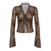 Leopard Shirt y2k Clothing Women Front Tie-up Ruffled Trim Flared Long Sleeve Mesh Blouse Top Grunge Clothes Streetwear