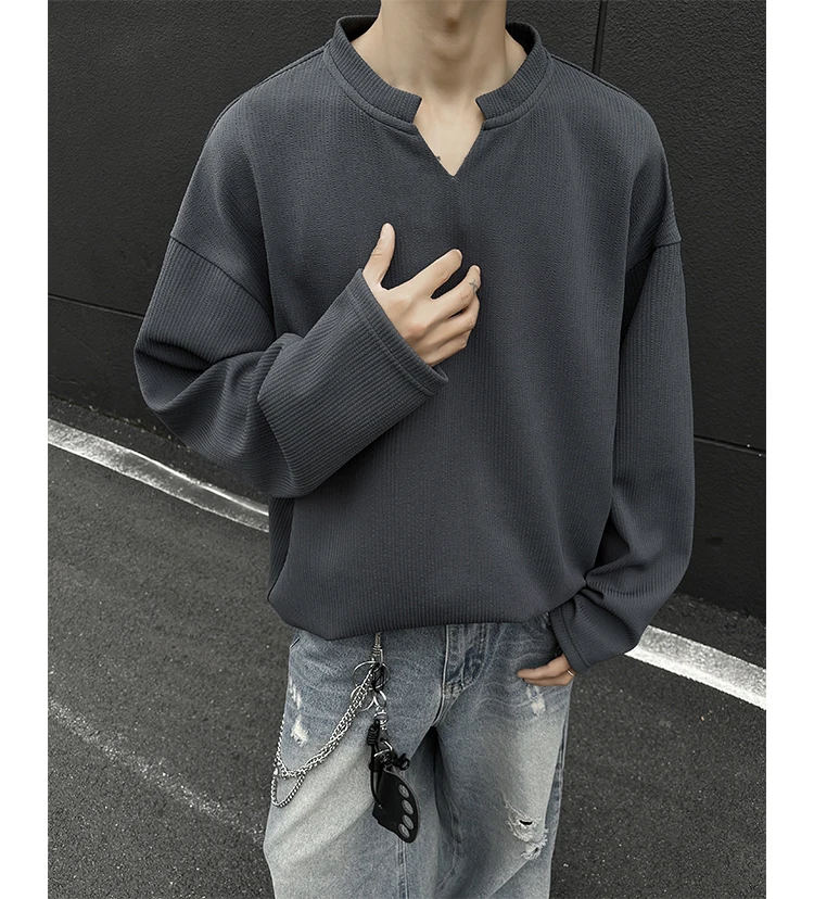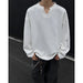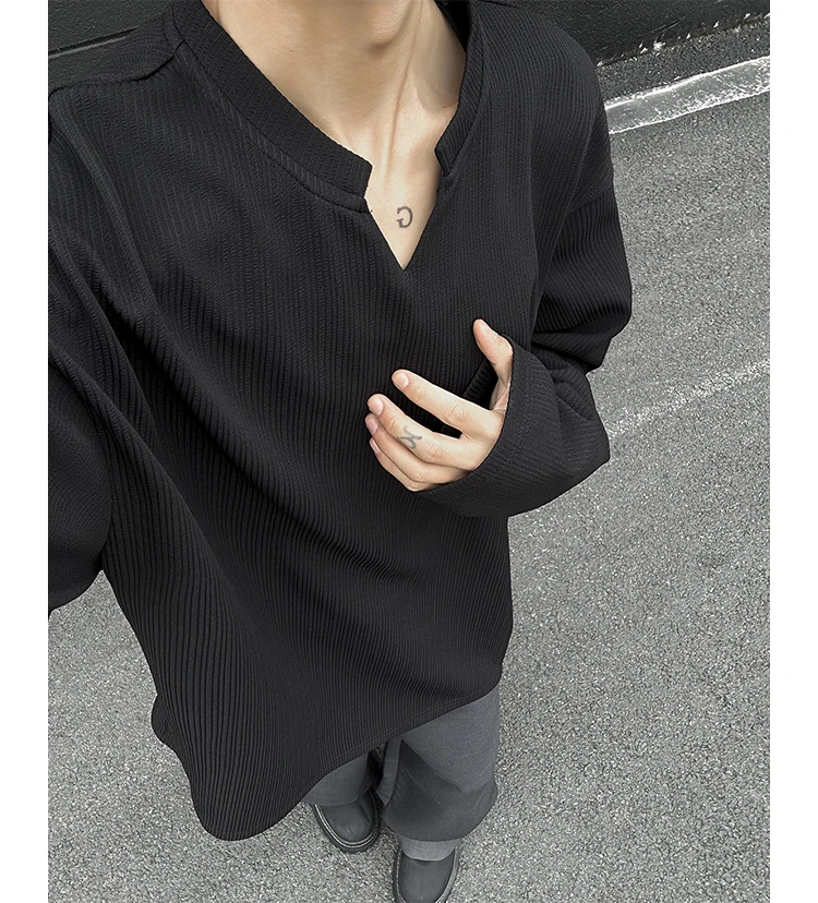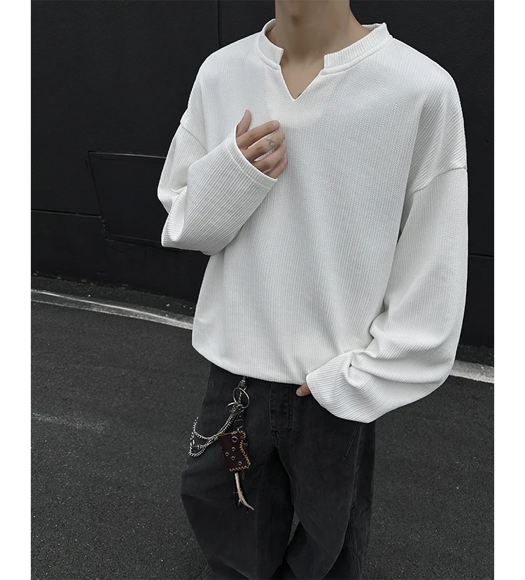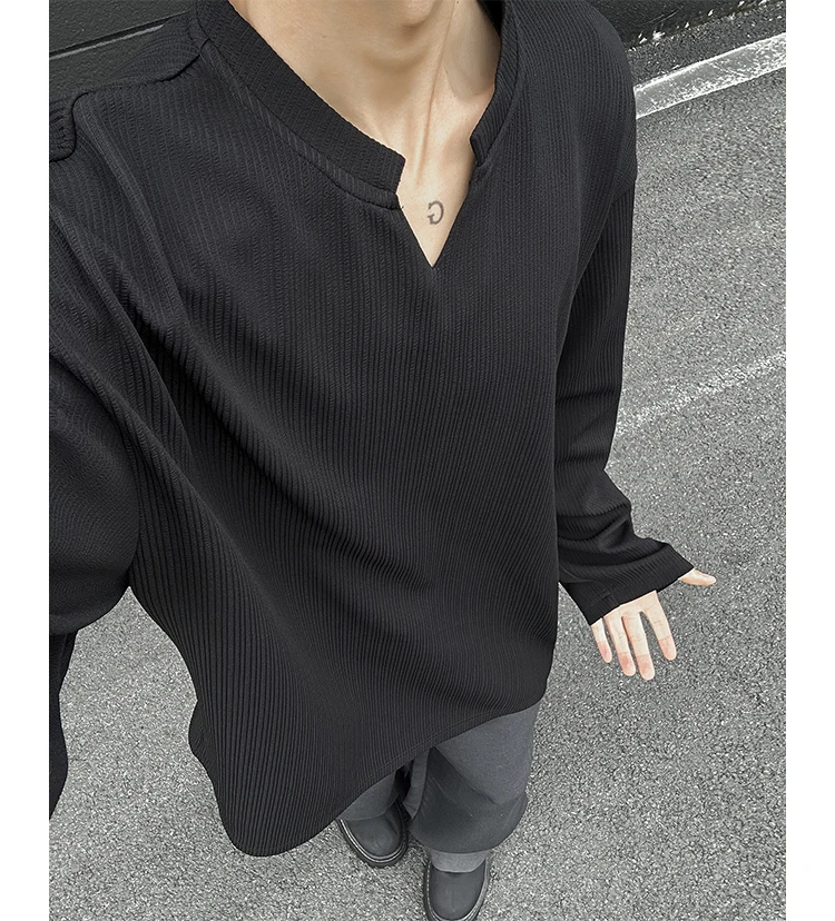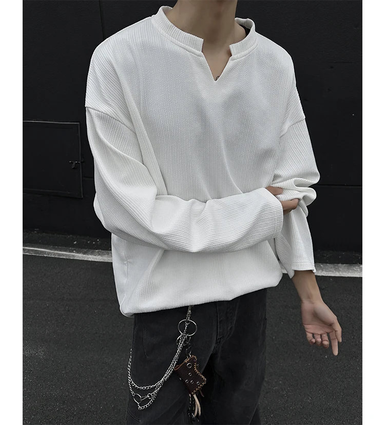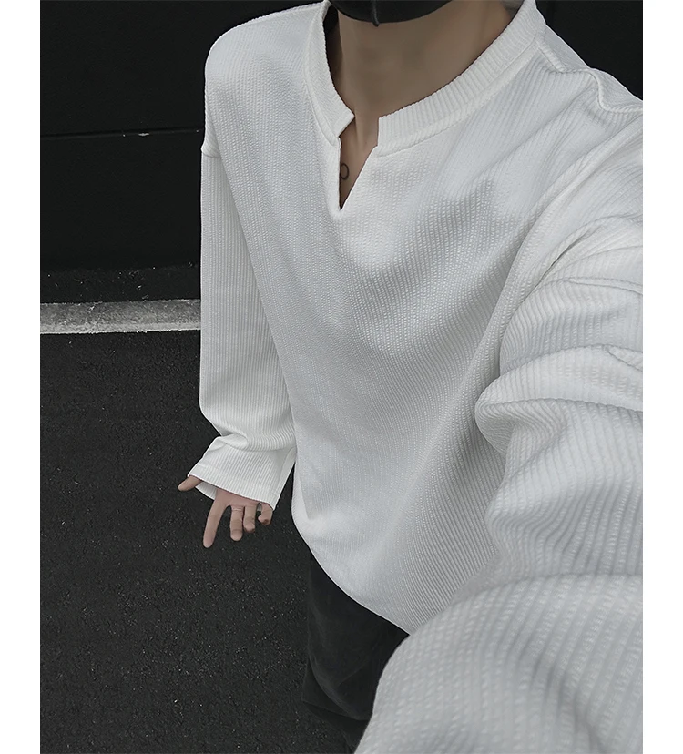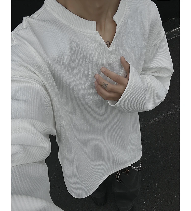 Long Sleeved T-shirt Men Fashion White Casual V-neck T Shirt Men Streetwear Korean Loose Pleated T Shirt Mens Top Plus Size 5XL