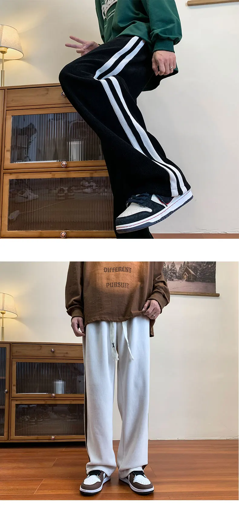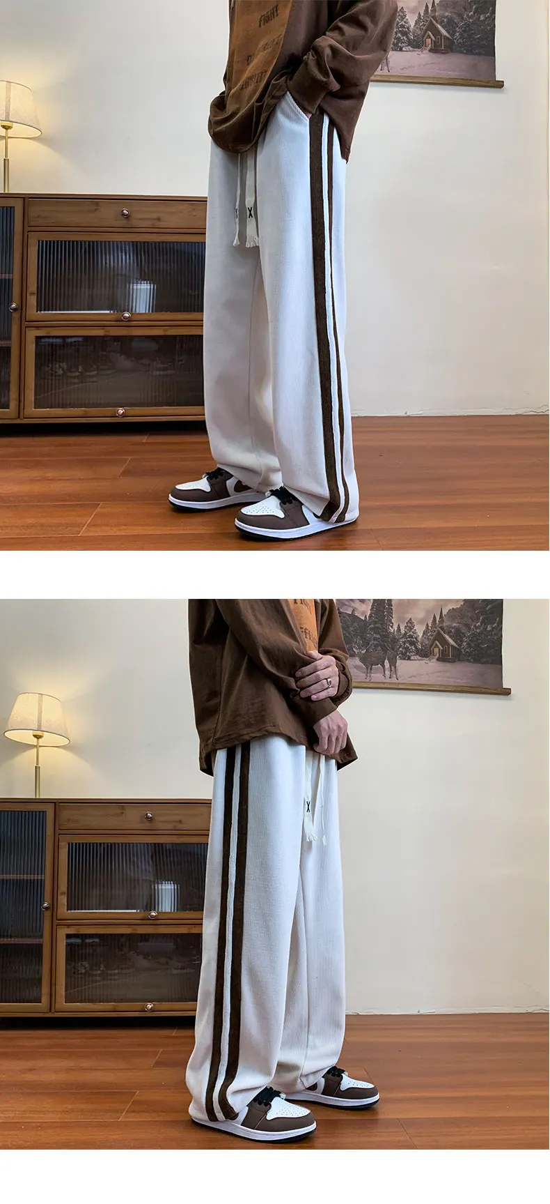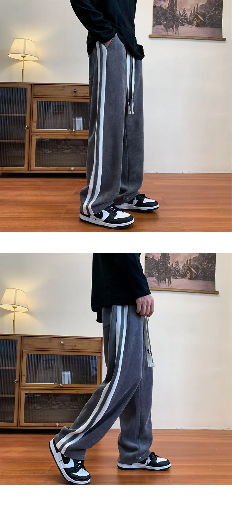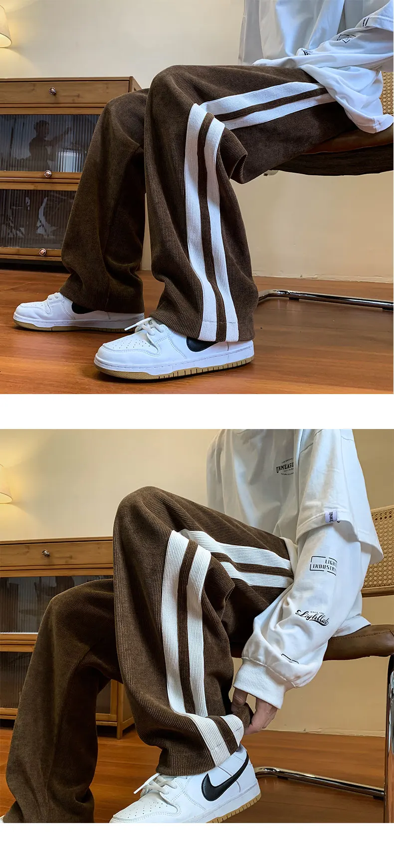 Loose Coffee Corduroy Pants Men Women Drawstring Striped Wide Leg Pants Autumn Casual Easy Care Anti-wrinkle Mopping Trousers