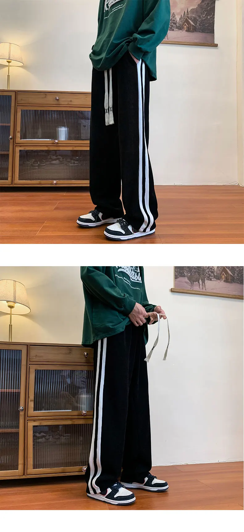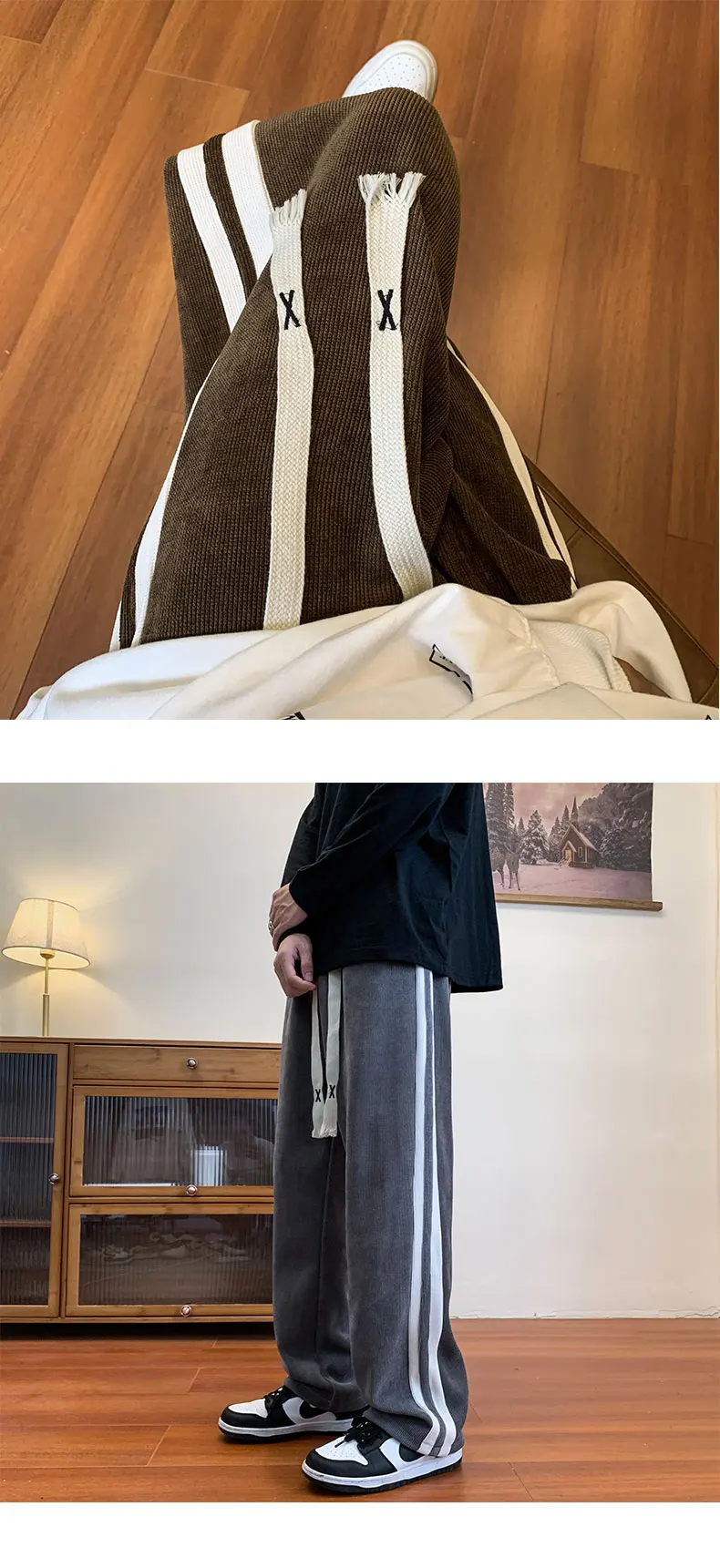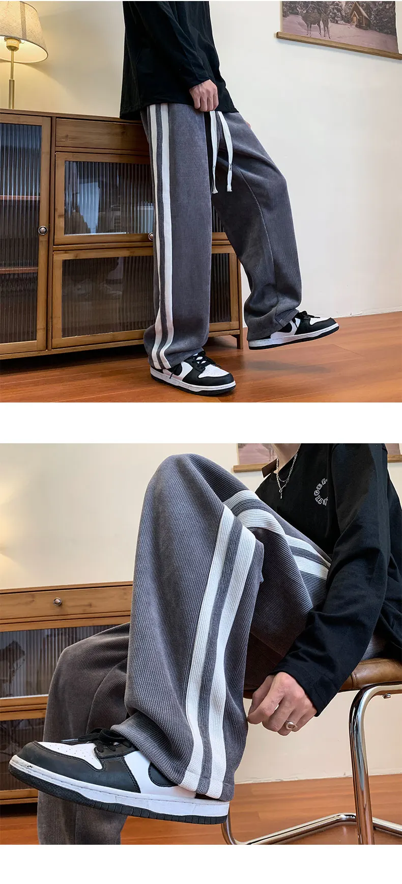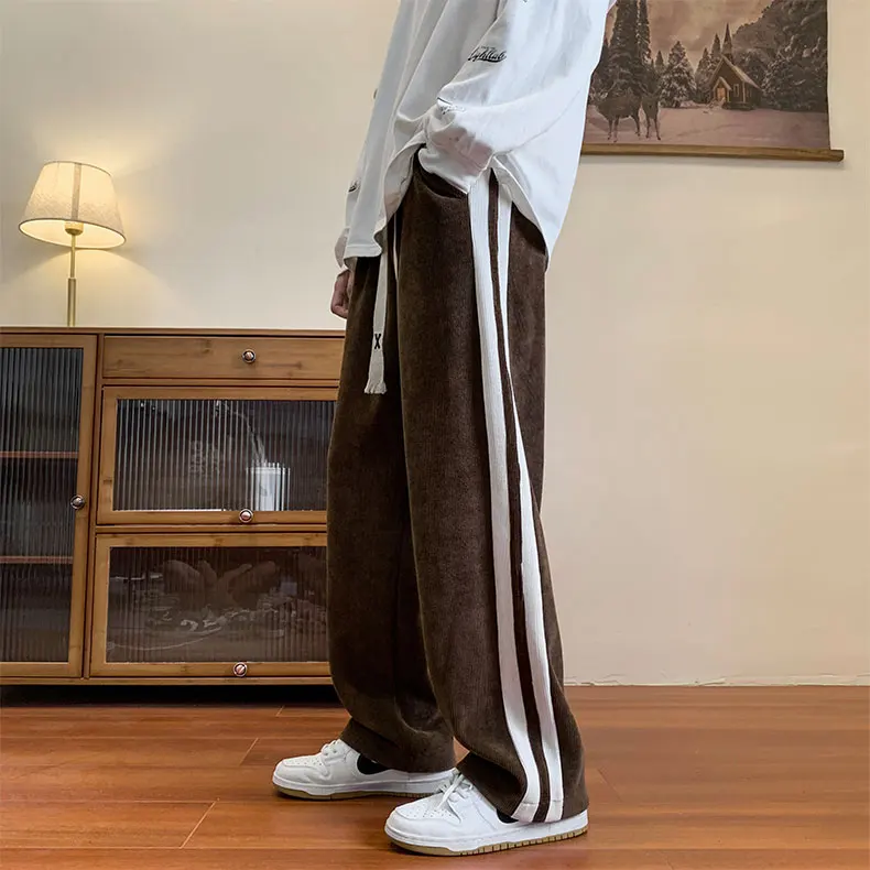Loose Coffee Corduroy Pants Men Women Drawstring Striped Wide Leg Pants Autumn Casual Easy Care Anti-wrinkle Mopping Trousers