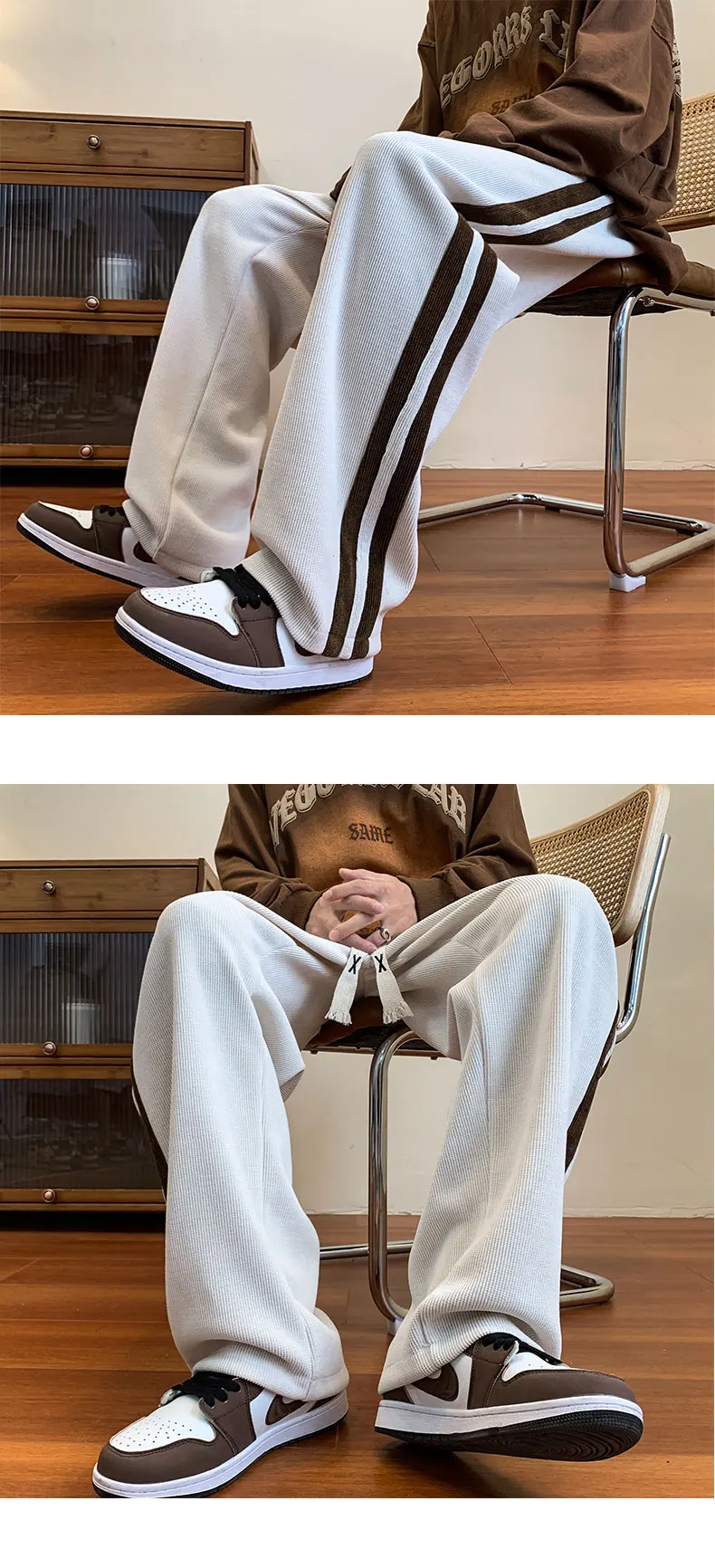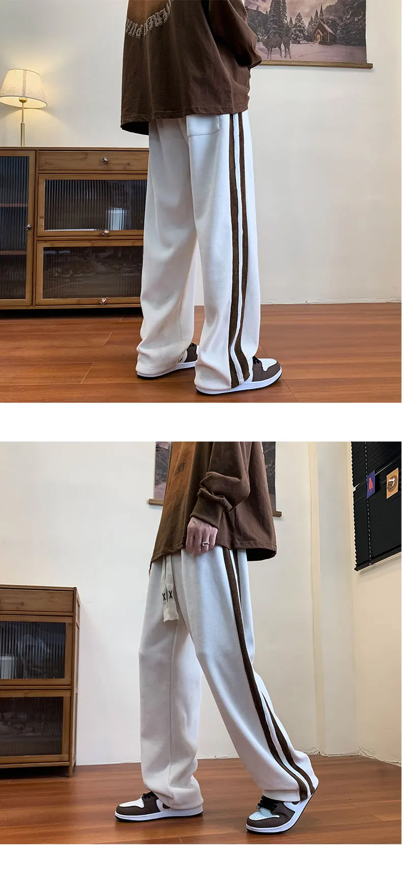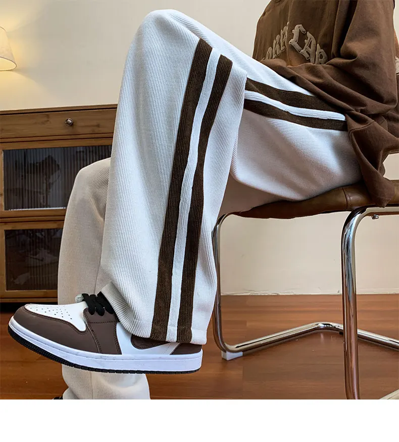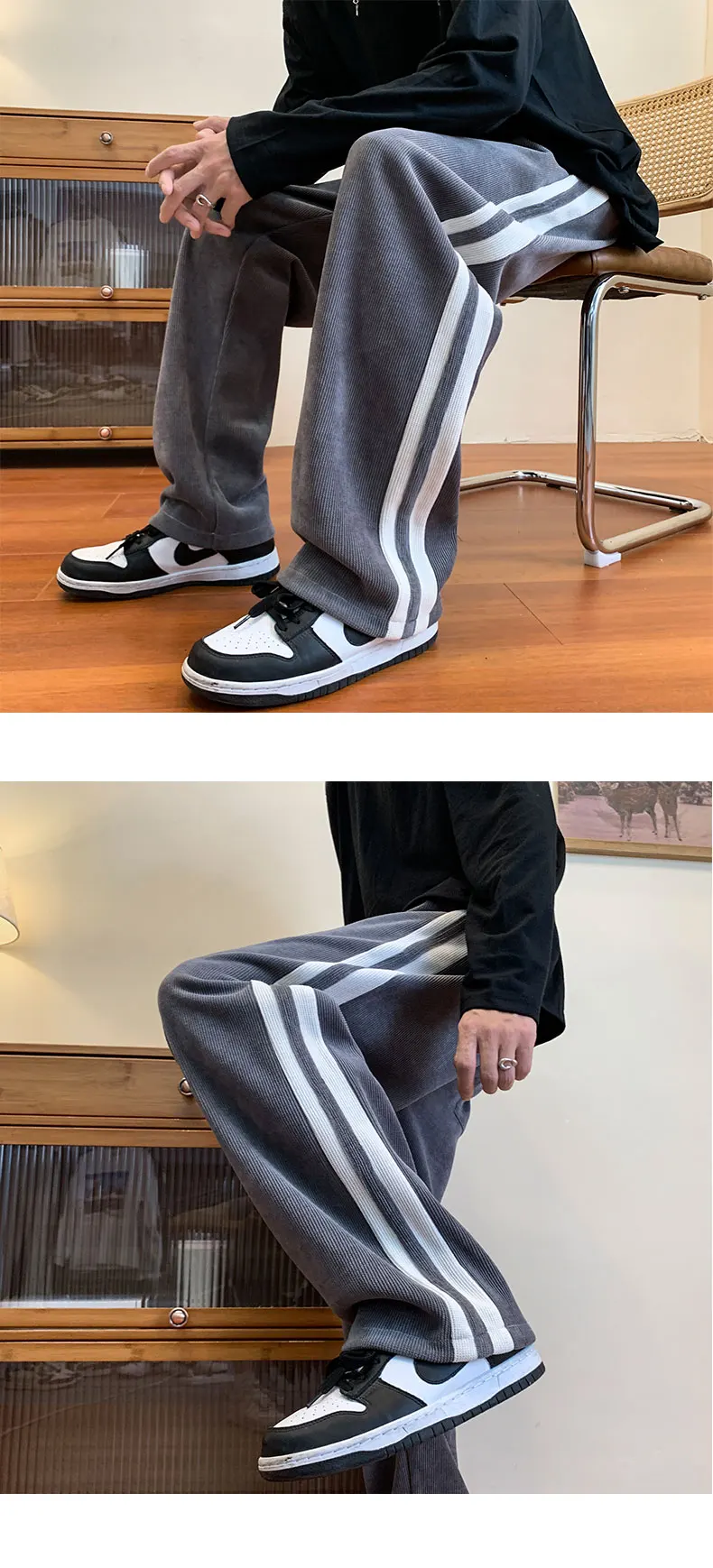 Loose Coffee Corduroy Pants Men Women Drawstring Striped Wide Leg Pants Autumn Casual Easy Care Anti-wrinkle Mopping Trousers