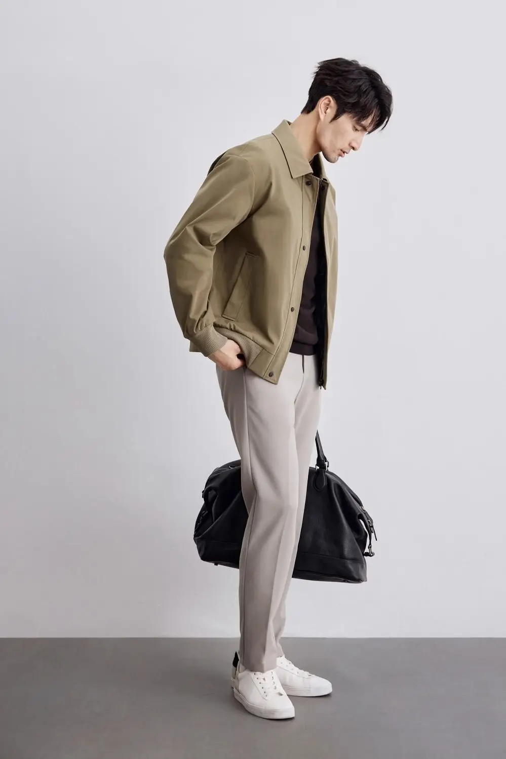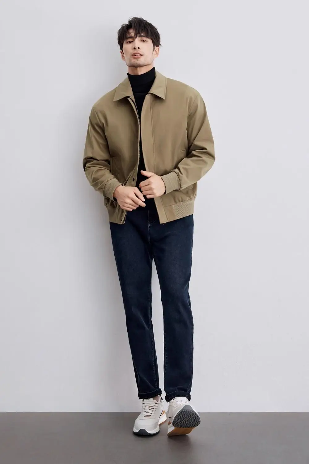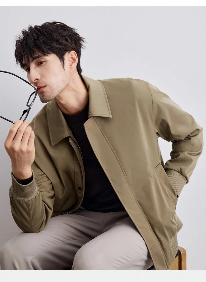 Maillard Style Autumn New Short Men Jacket Korean Fashion Lapel High-end Solid Color Casual Bomber Jacket Coats Men