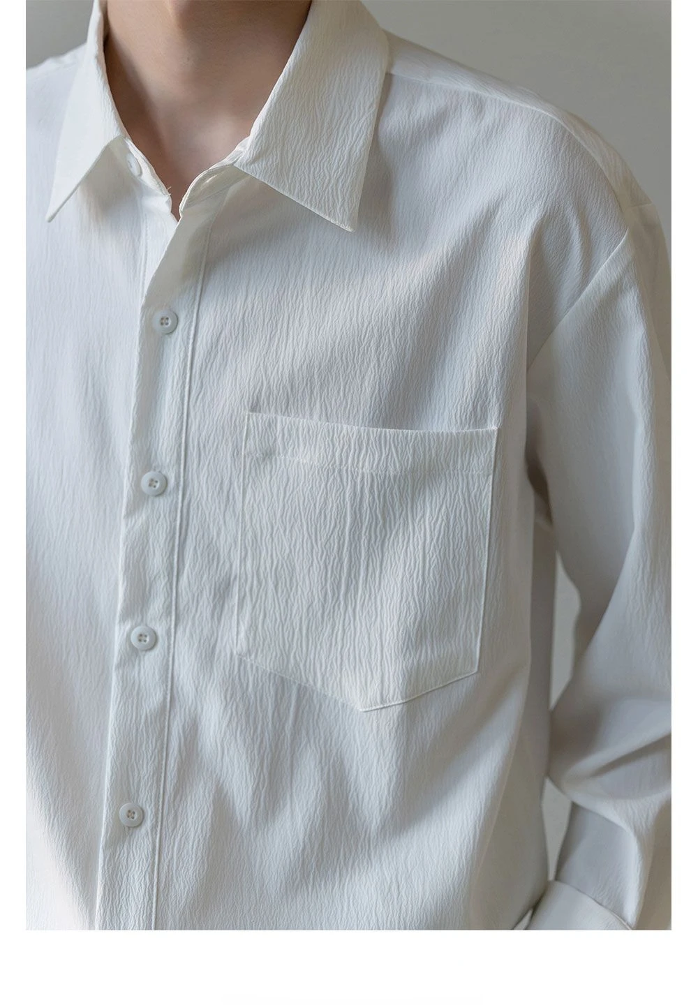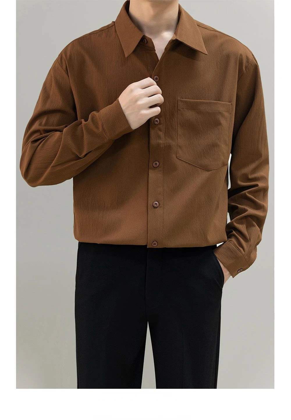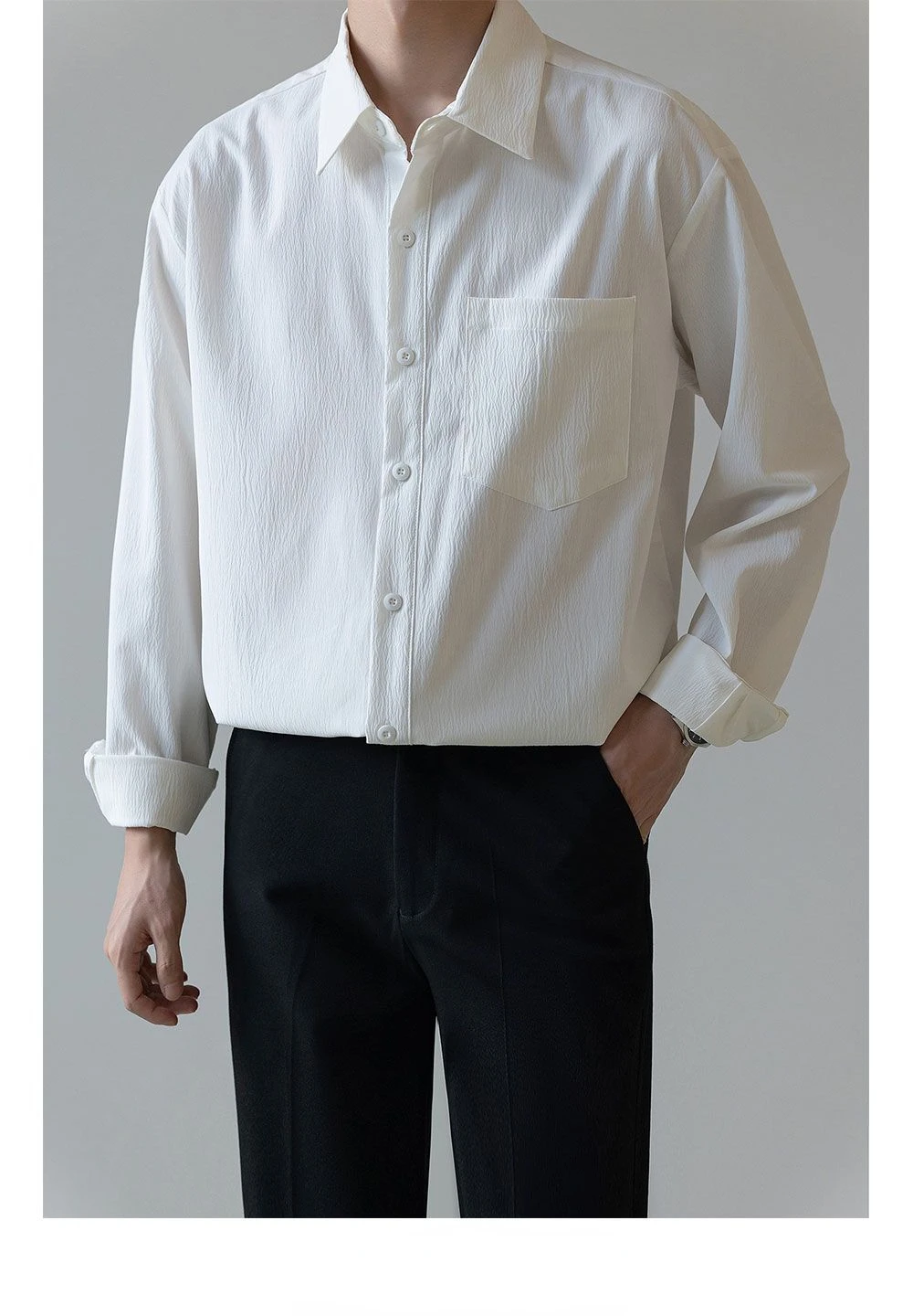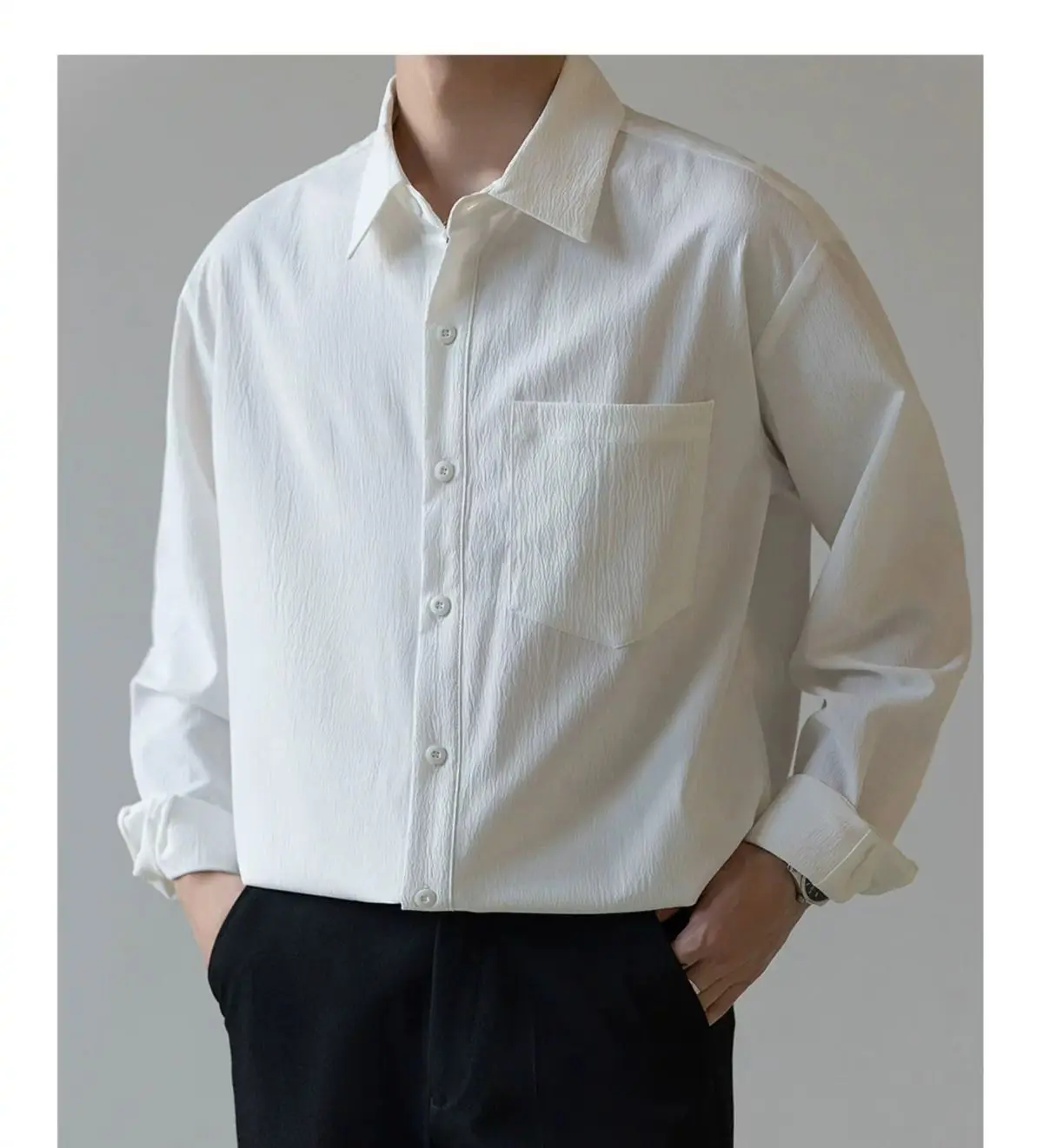 Mature Style White Shirt Men Long-sleeved Button Lapels Spring Korean Fashion Loose Cotton Linen Pocket Luxury Shirts for Men