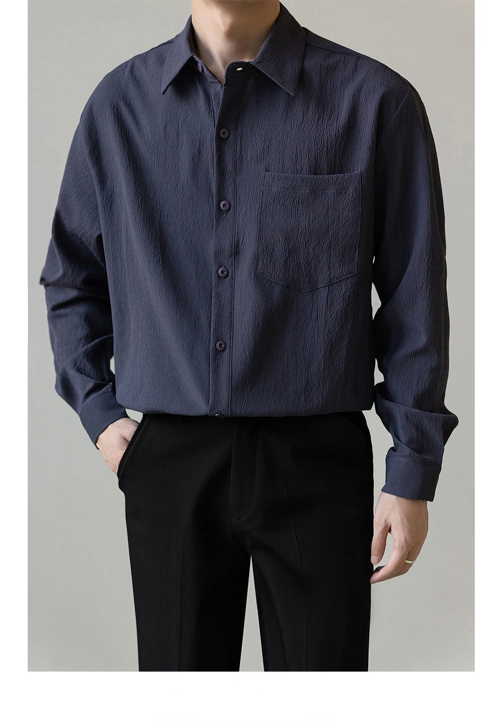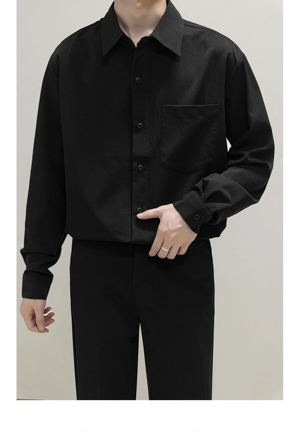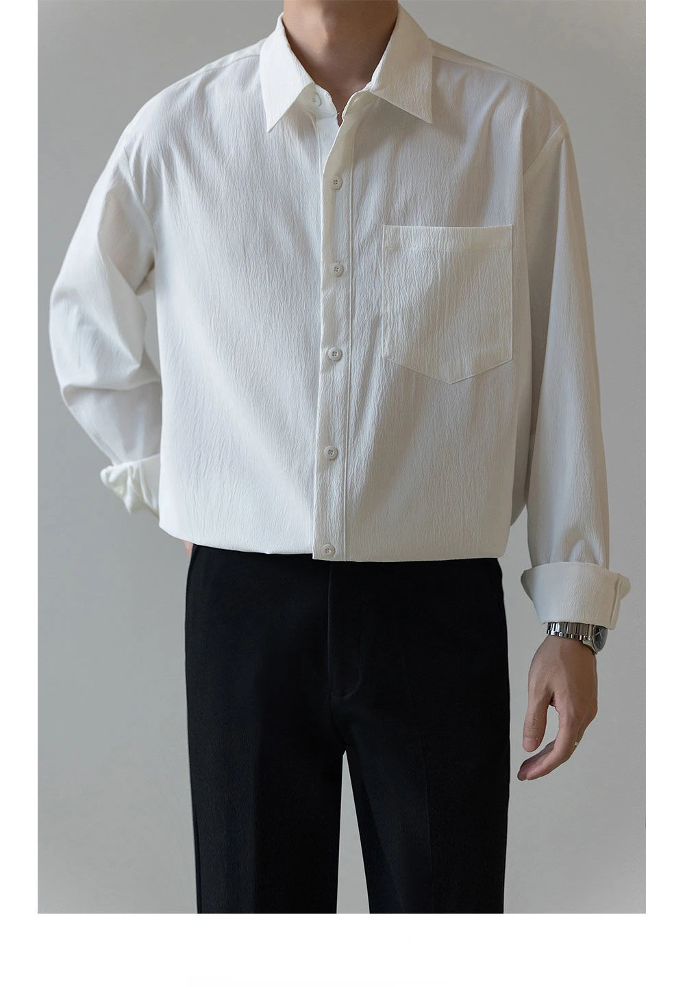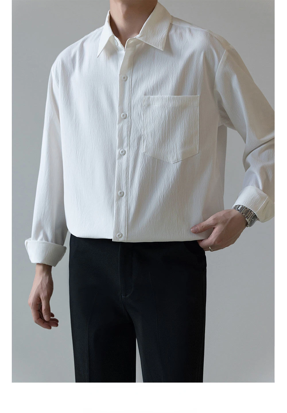 Mature Style White Shirt Men Long-sleeved Button Lapels Spring Korean Fashion Loose Cotton Linen Pocket Luxury Shirts for Men