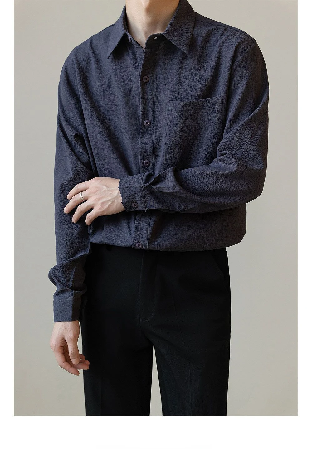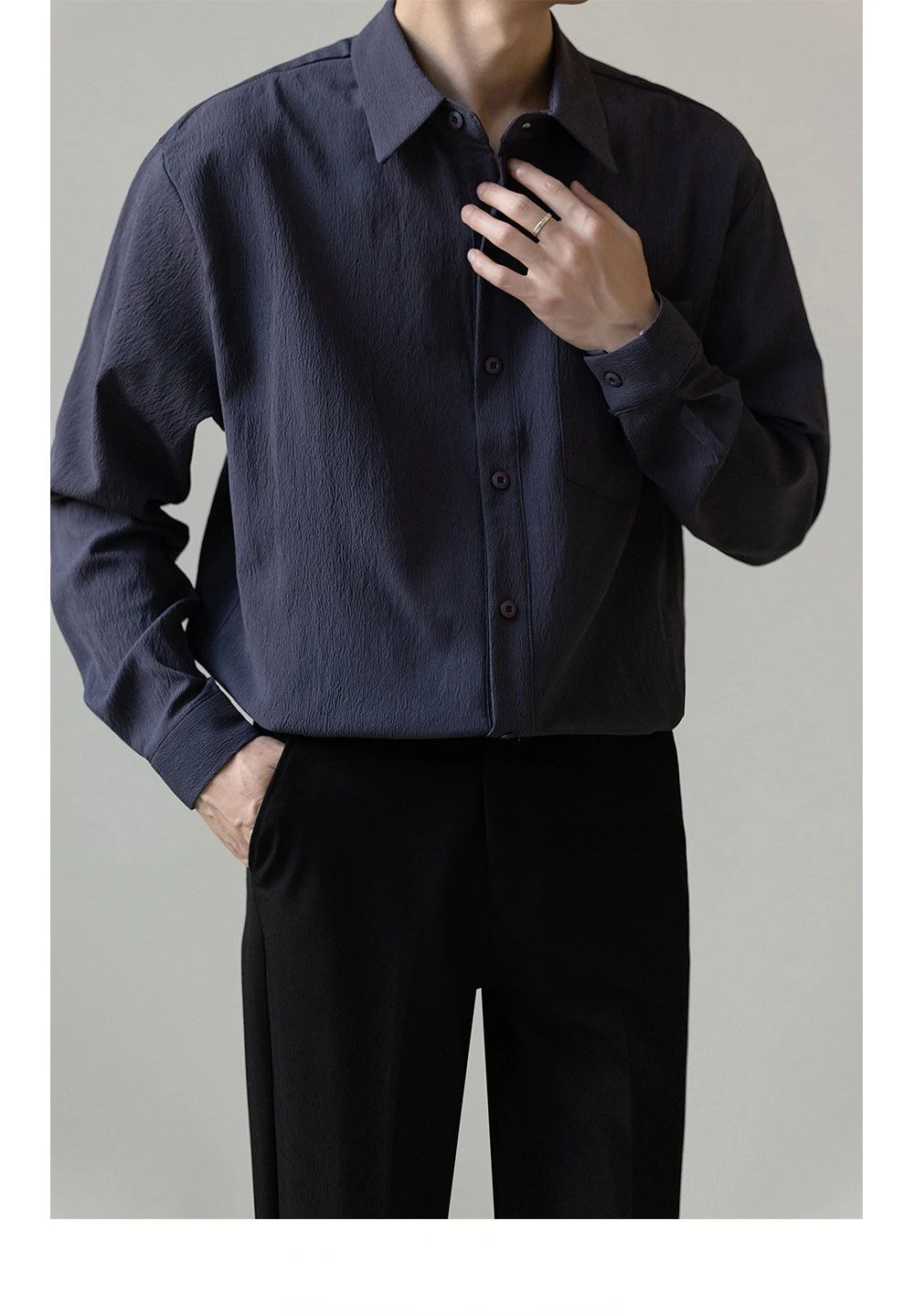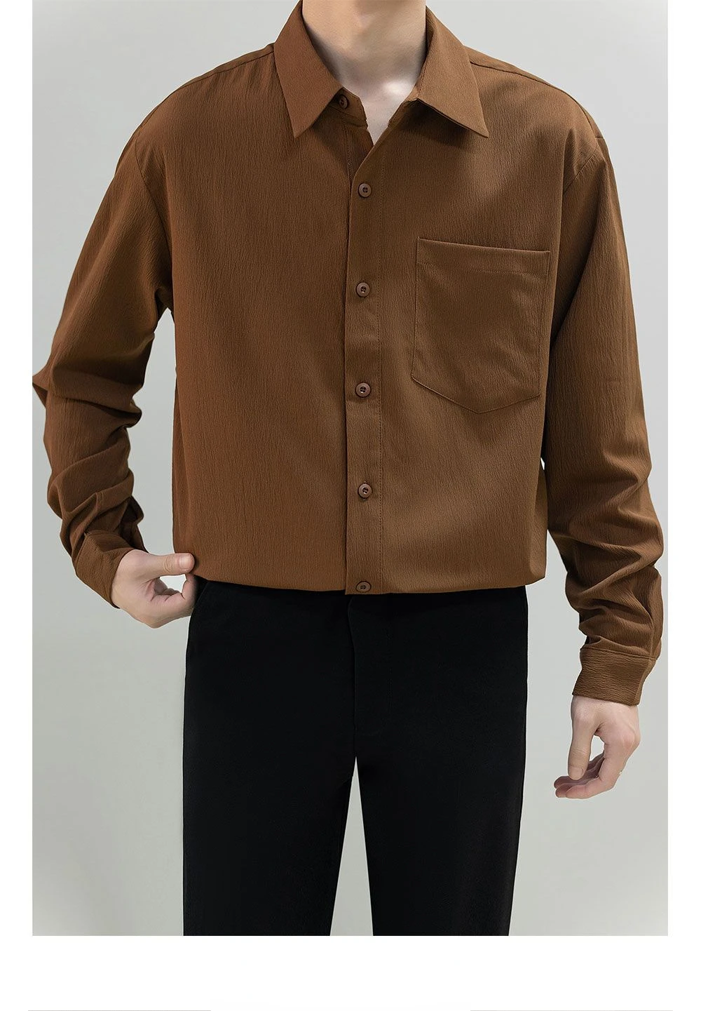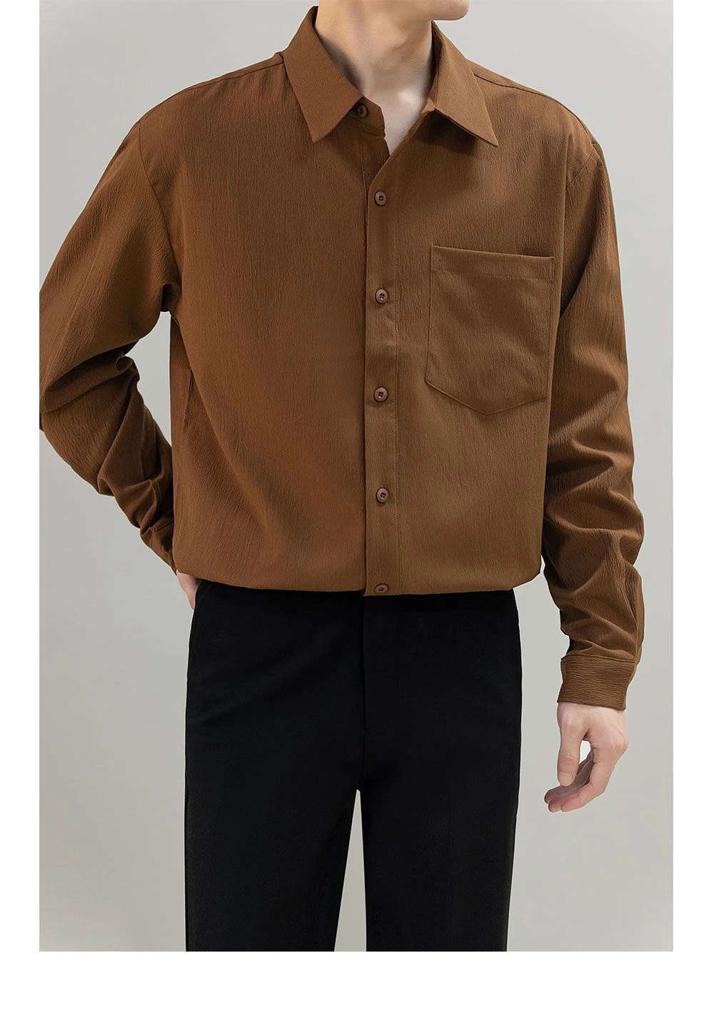 Mature Style White Shirt Men Long-sleeved Button Lapels Spring Korean Fashion Loose Cotton Linen Pocket Luxury Shirts for Men