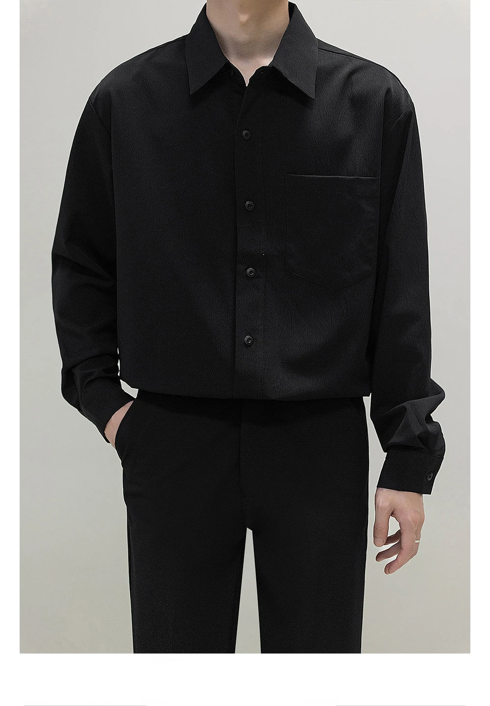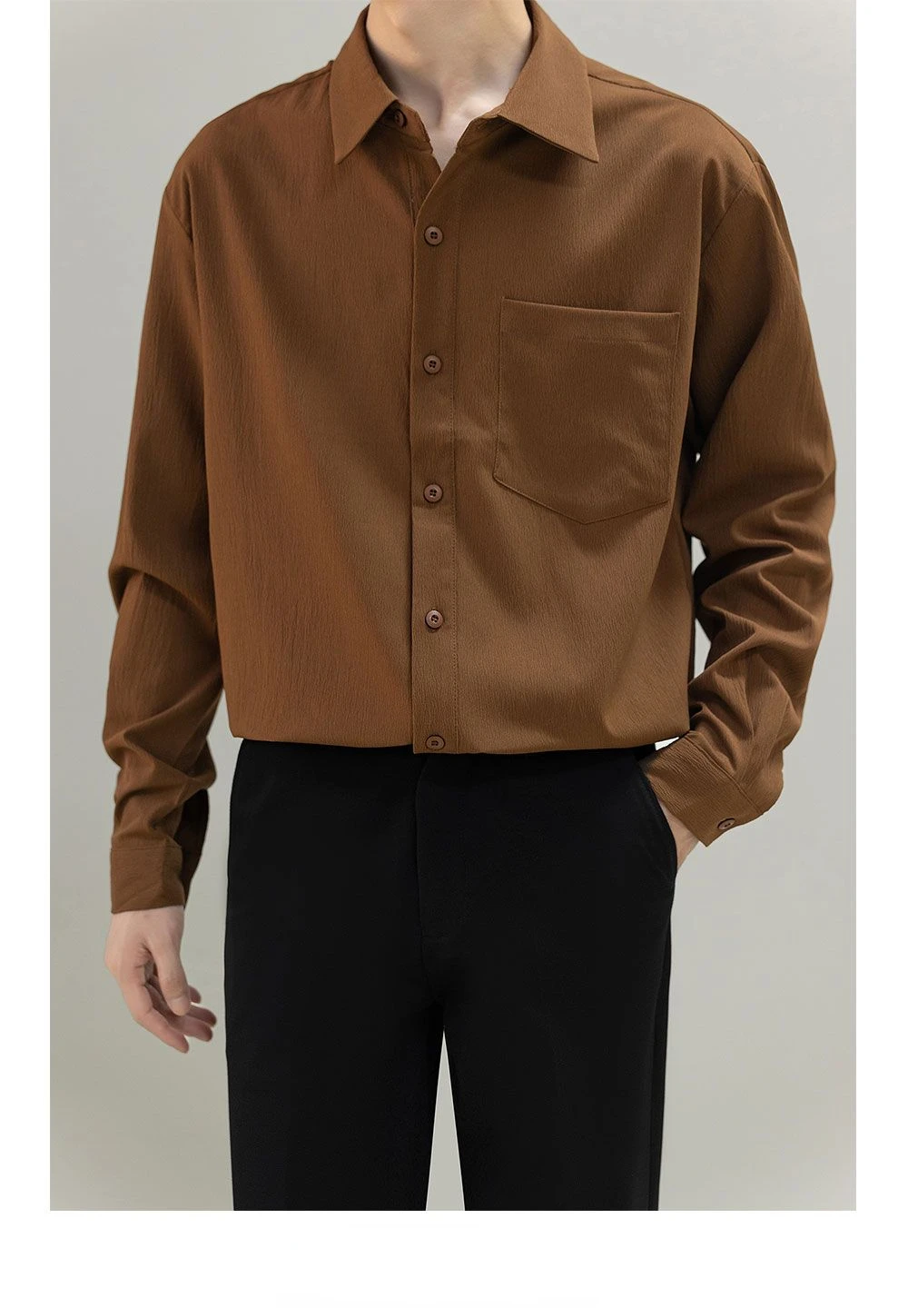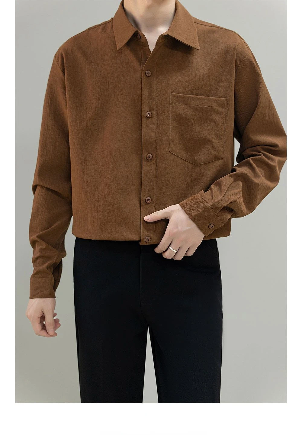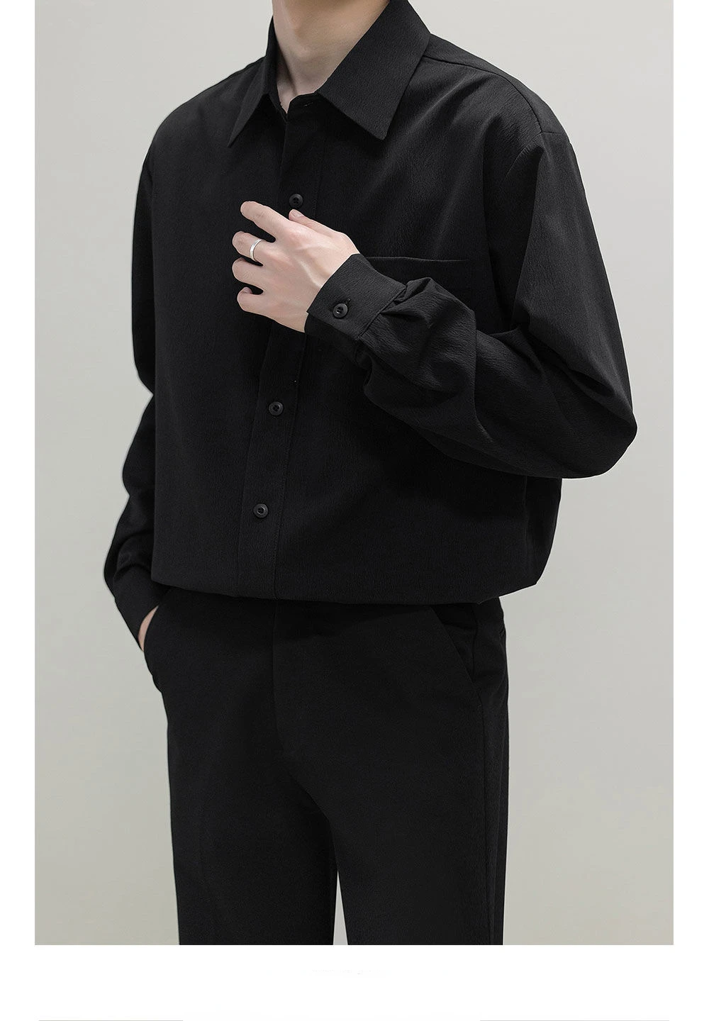 Mature Style White Shirt Men Long-sleeved Button Lapels Spring Korean Fashion Loose Cotton Linen Pocket Luxury Shirts for Men