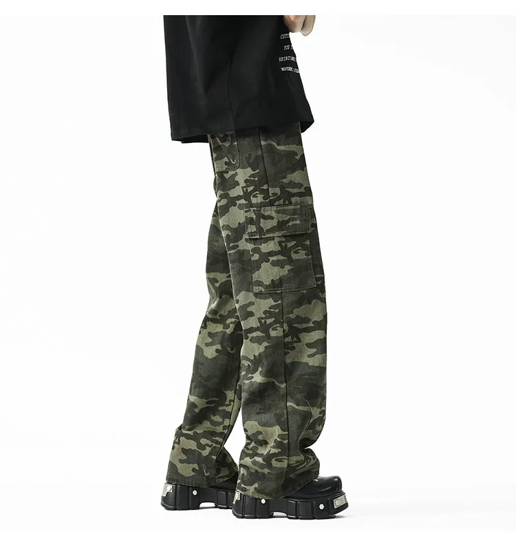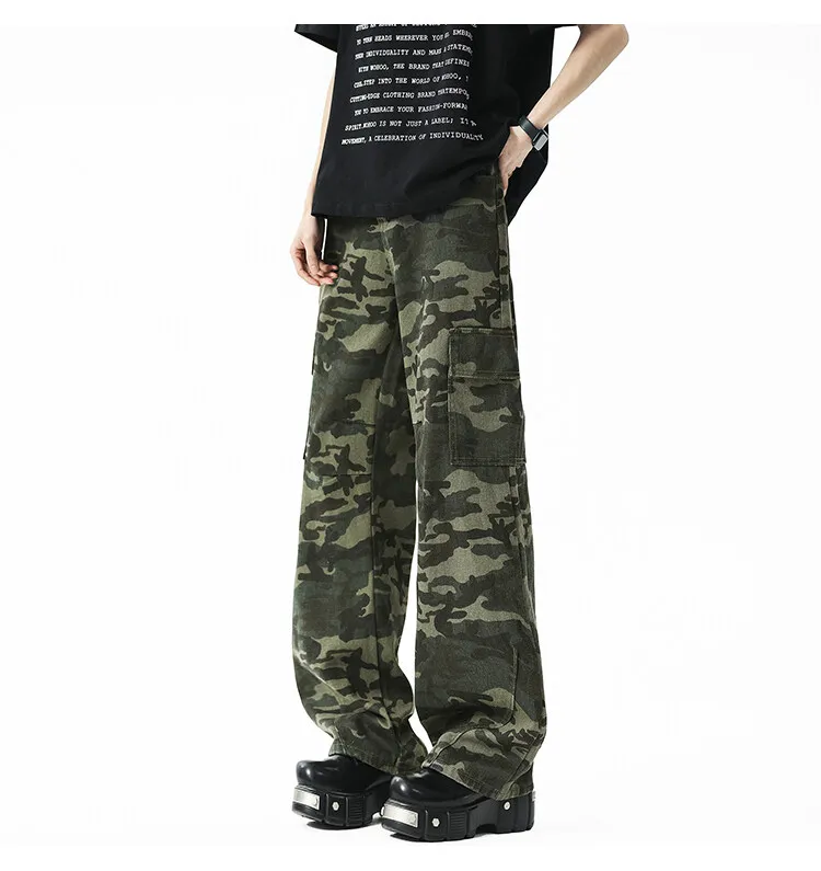 Men Blue Washed Denim Jeans Loose Fit Wide Leg Baggy Streetwear Casual Trousers Hip Hop Graffiti Design Fashion Stretch Comfort