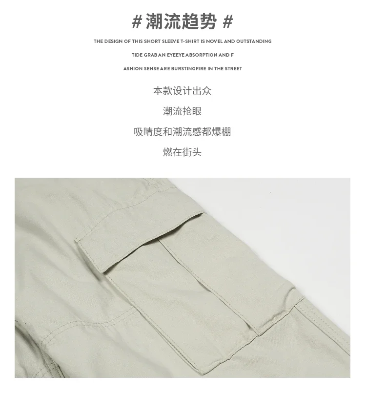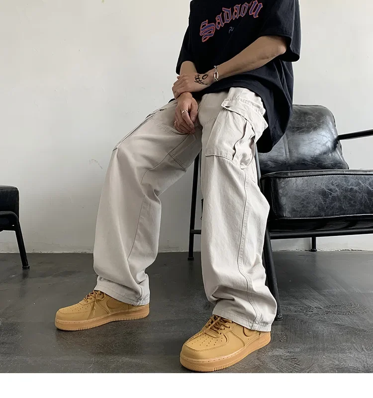 Men Casual Multiple Pockets Pants Work American Style Hip-hop Summer Full-length Fashion Loose Trendy Chill Ins New Creativity