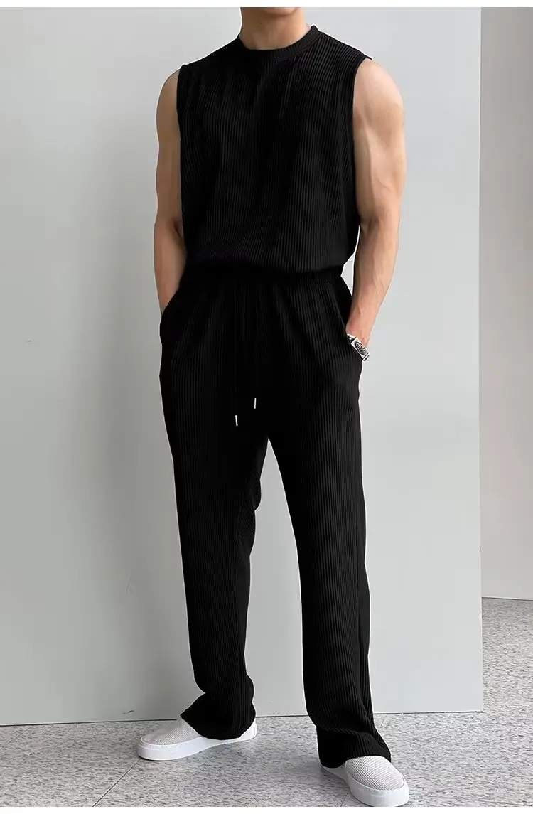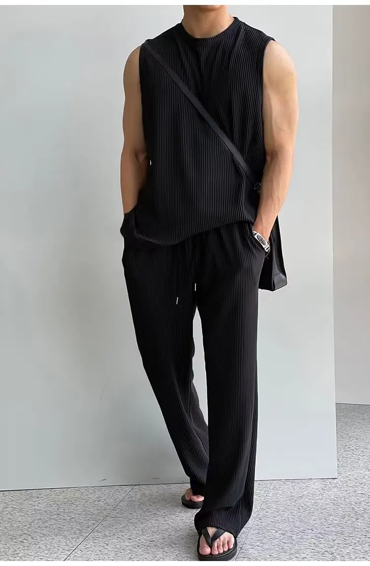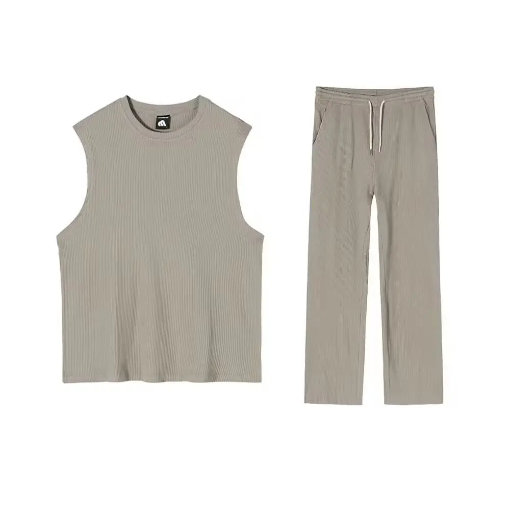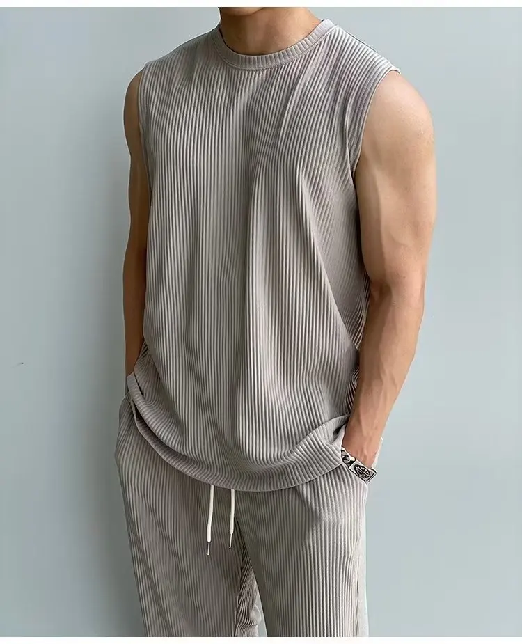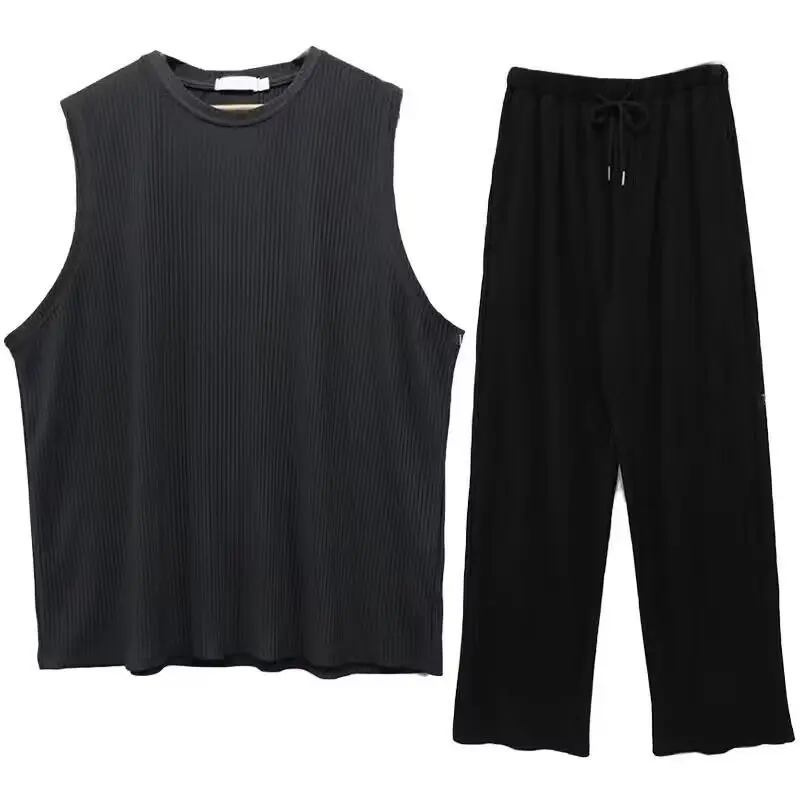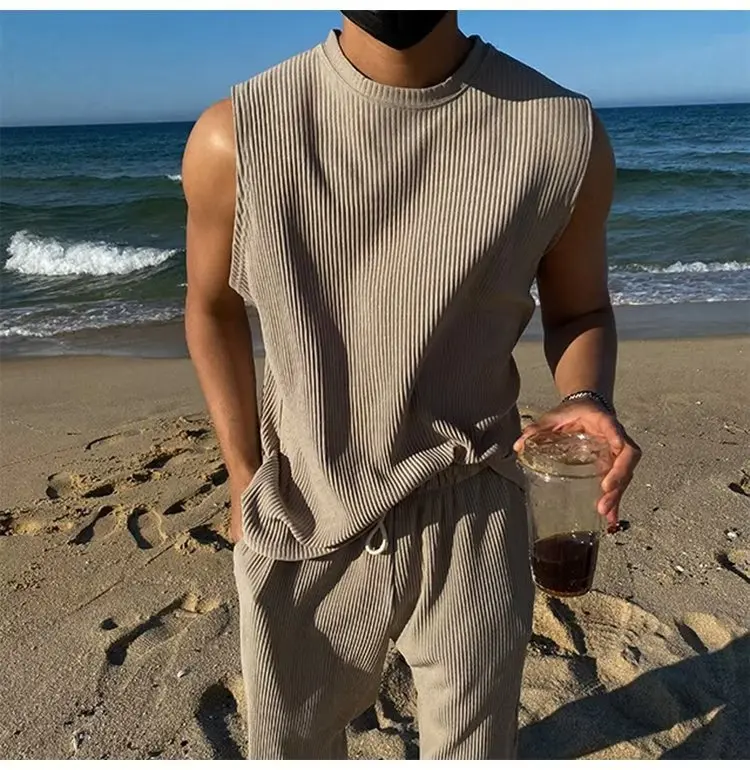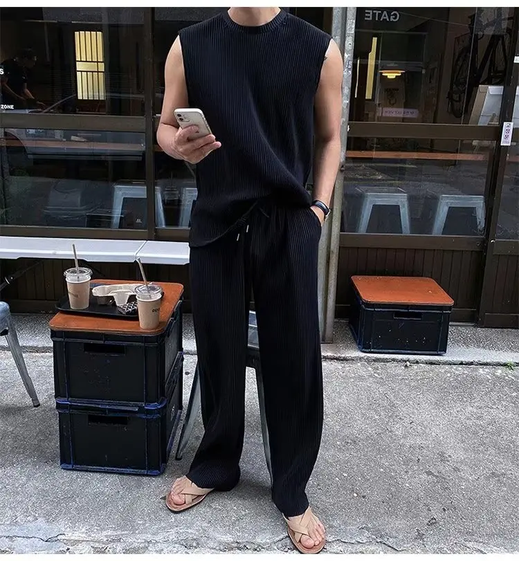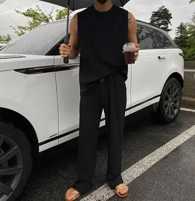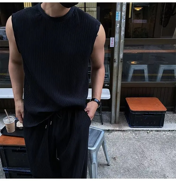 Men Clothing Summer Solid Color Vest Suits for Men Quick Drying Breathable Thin Ice Silk Top Sleeveless Fitness Tracksuit Men