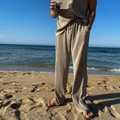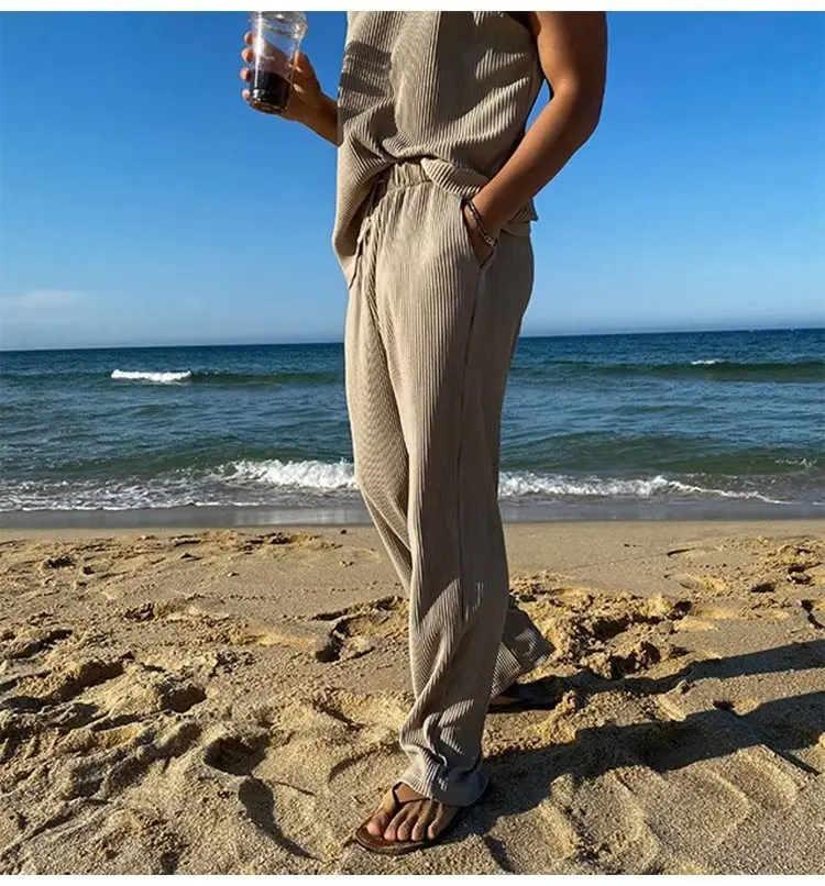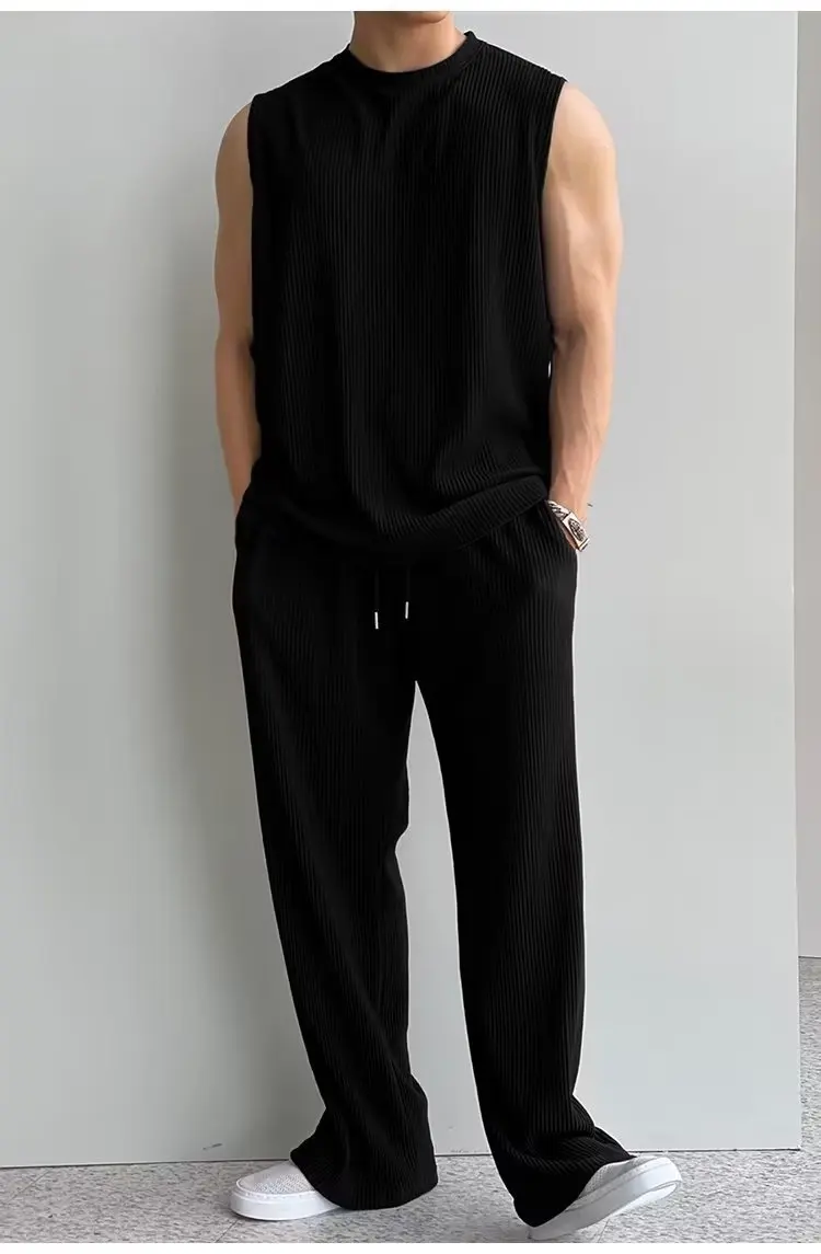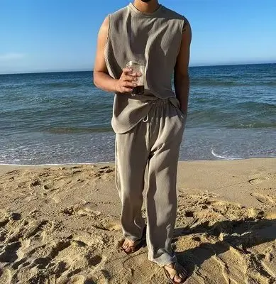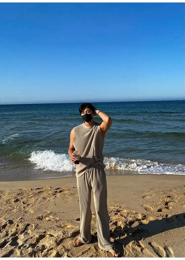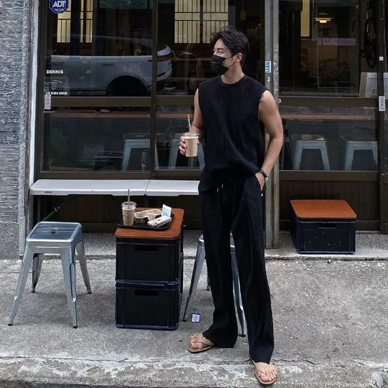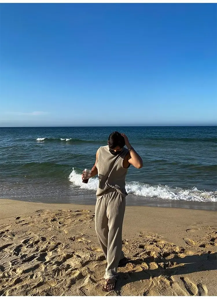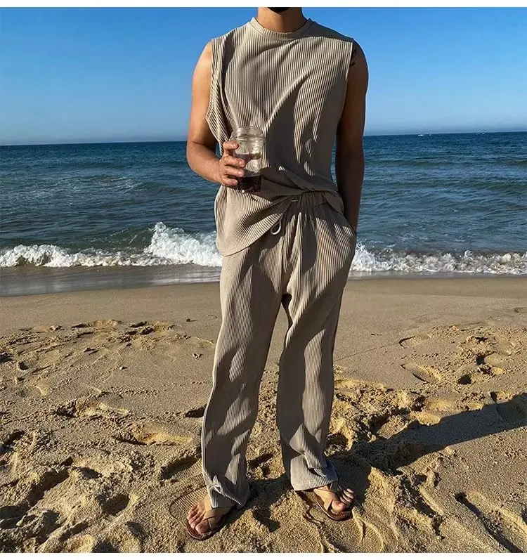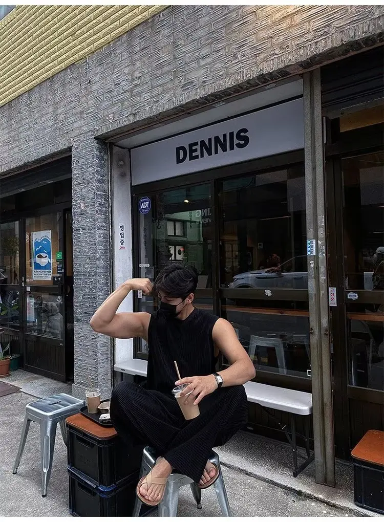 Men Clothing Summer Solid Color Vest Suits for Men Quick Drying Breathable Thin Ice Silk Top Sleeveless Fitness Tracksuit Men