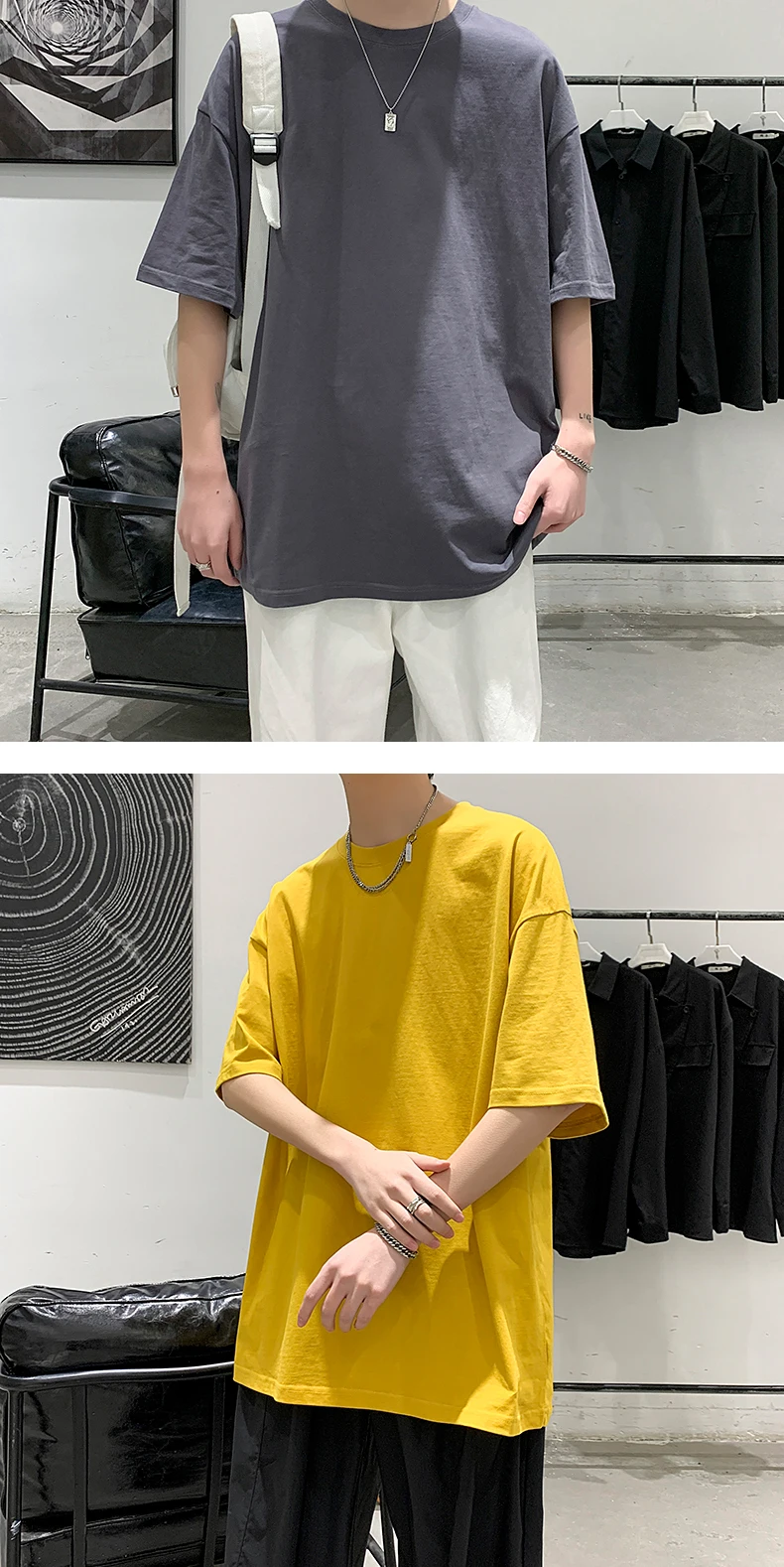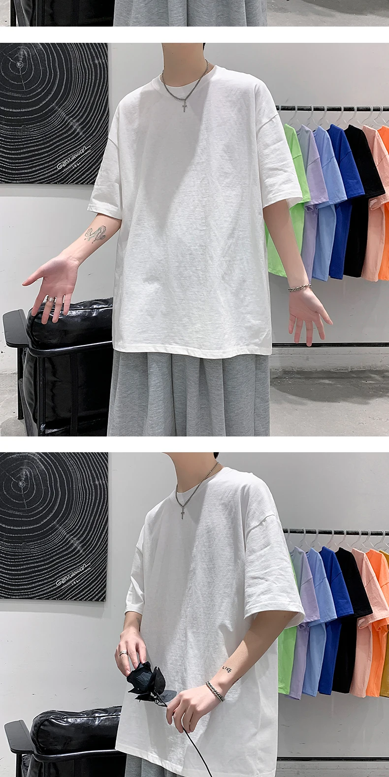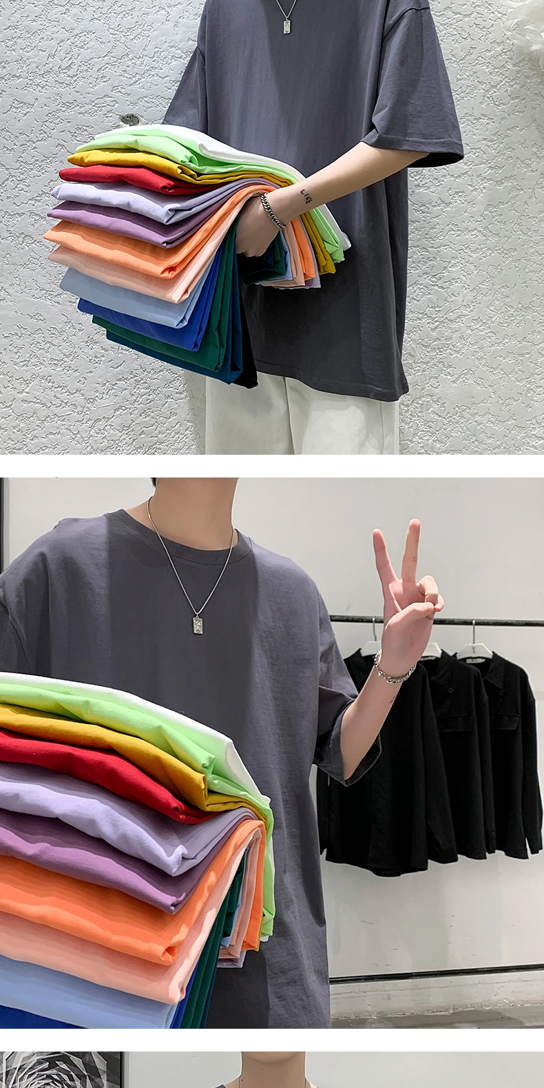 Men Oversized Graphic Solid T Shirts Colorfuls 100% Cotton Mens White Classical Tee Male Short Sleeve O-Neck Tops
