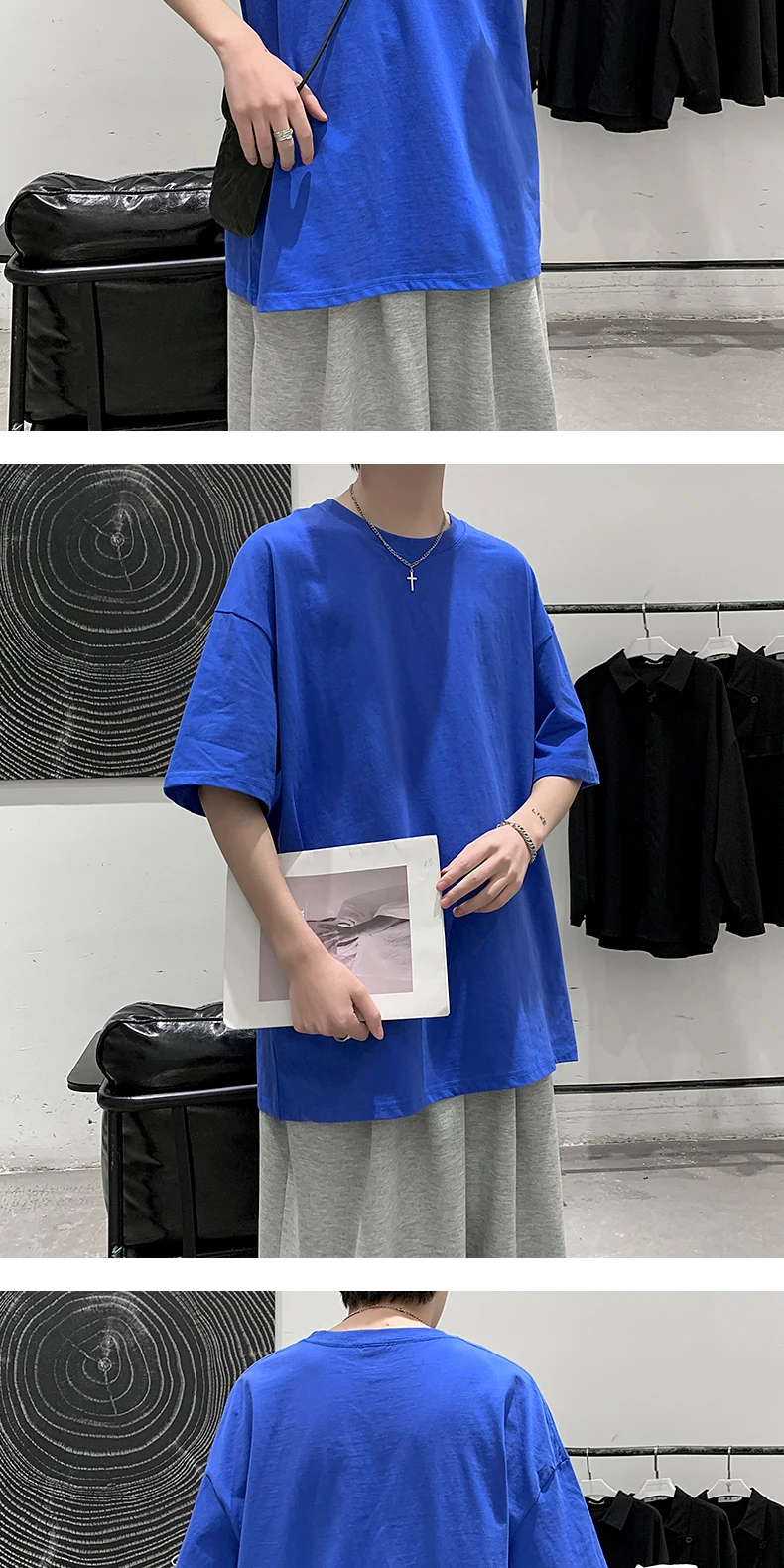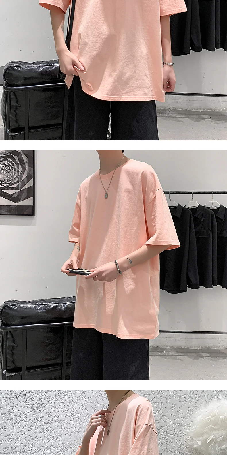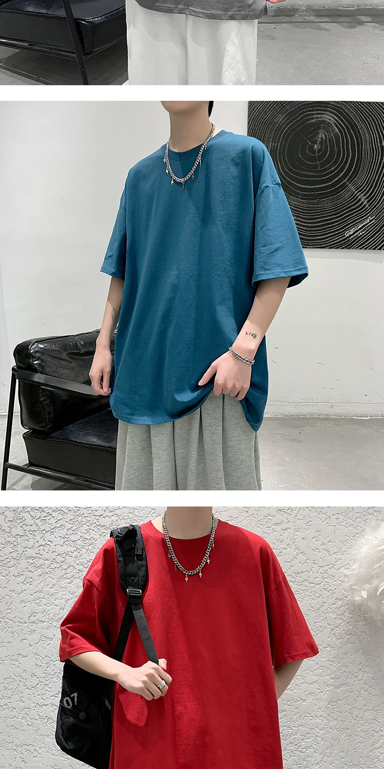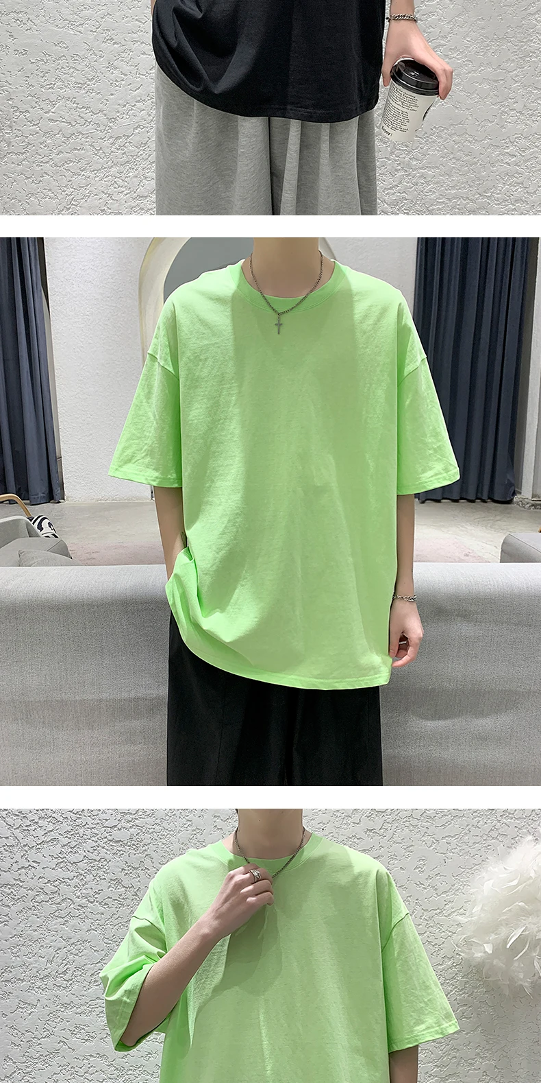 Men Oversized Graphic Solid T Shirts Colorfuls 100% Cotton Mens White Classical Tee Male Short Sleeve O-Neck Tops