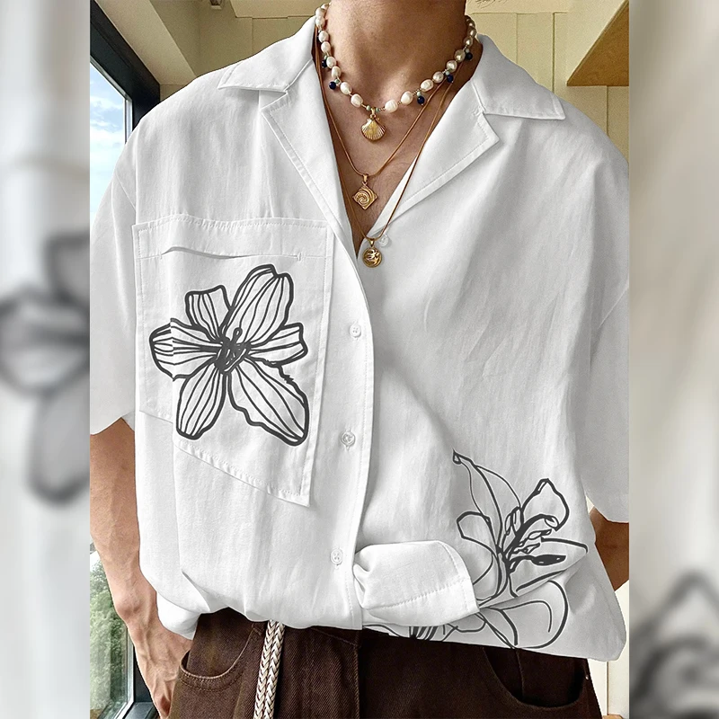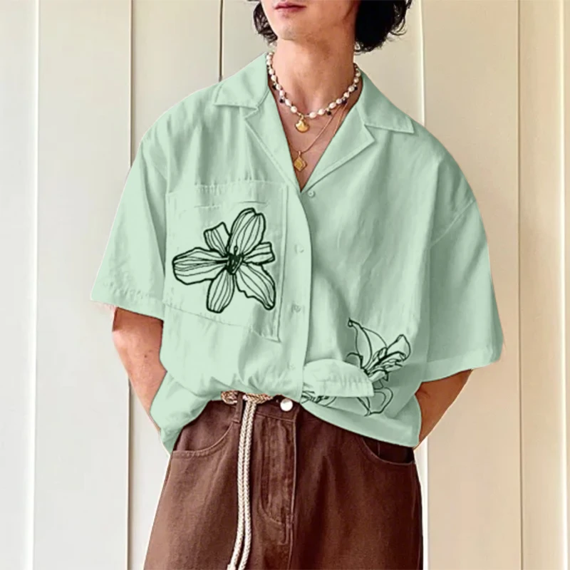 Men Shirt Floral Printing Lapel Short Sleeve Casual Men Clothing Summer Oversize INCERUN Vacation Fashion Shirts Streetwear