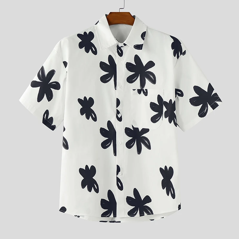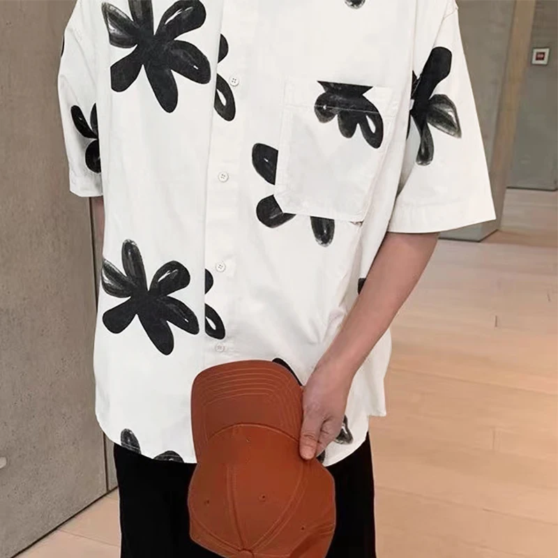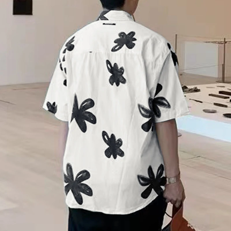 Men Shirt Floral Printing Lapel Short Sleeve Loose Men Clothing Summer Streetwear KoreanFashion Male Casual Shirts 2025