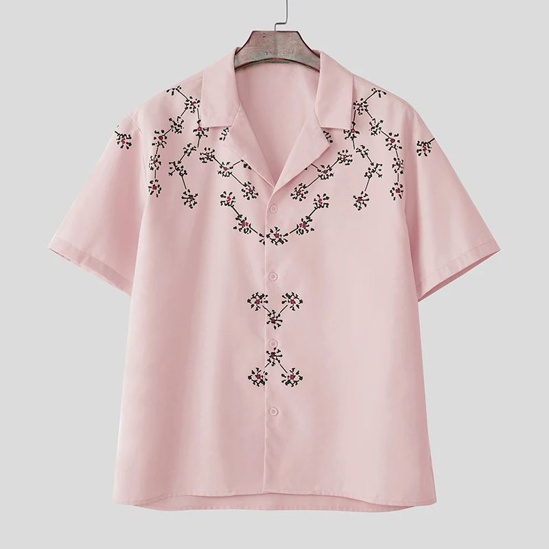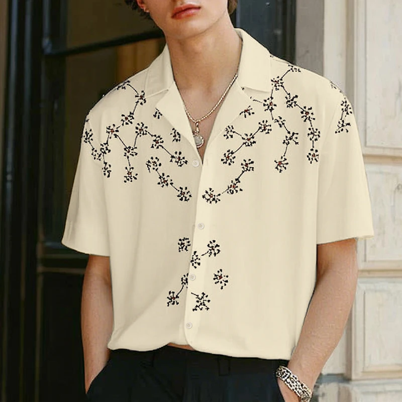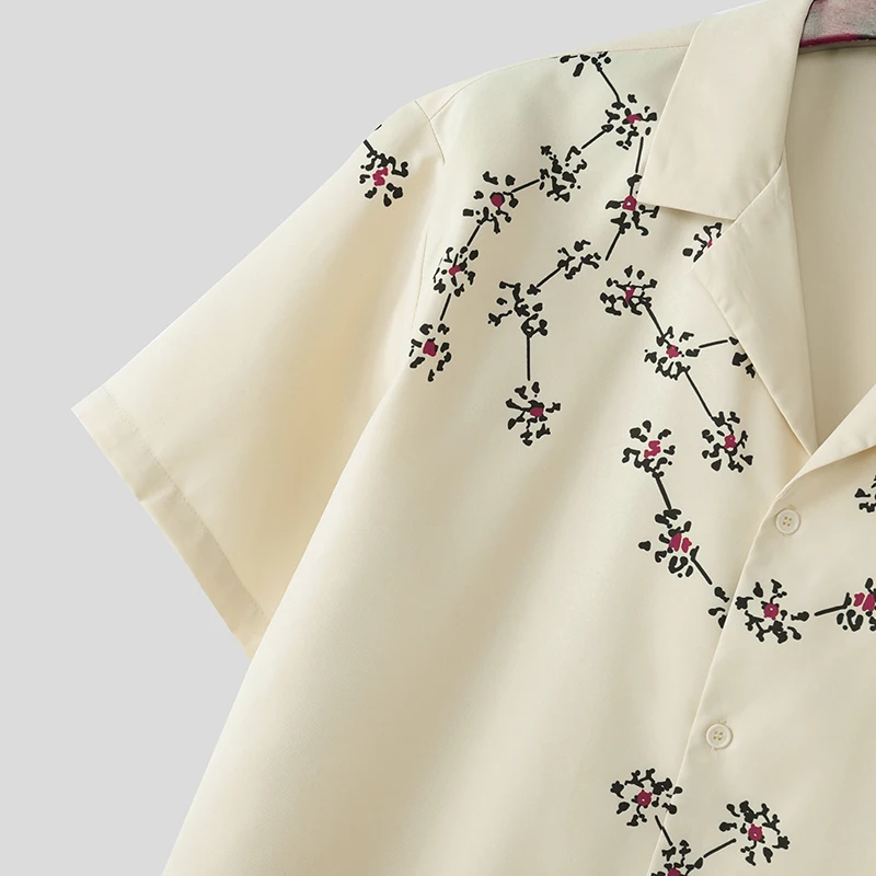 Men Shirt Floral Printing Summer Korean Men Clothing Lapel Short Sleeve Oversize Fashion Casual Shirts Streetwear
