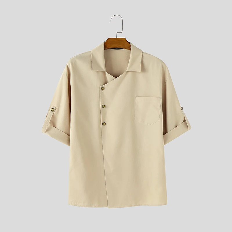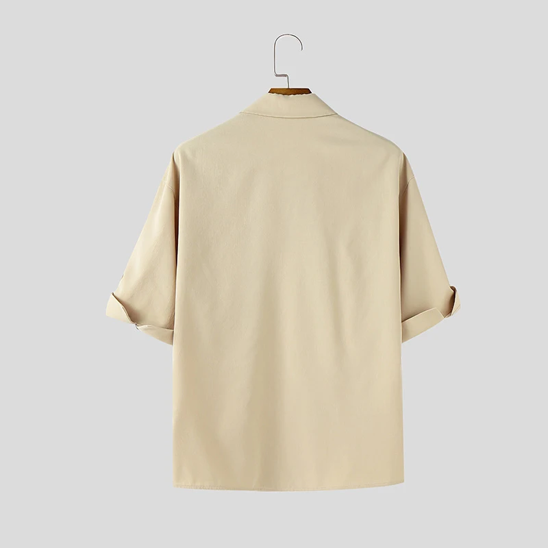 Men Shirt Lapel Short Sleeve Solid Color Casual Men Clothing Summer Streetwear 2025 Fashion Oversize Male Shirts Tops INCERUN