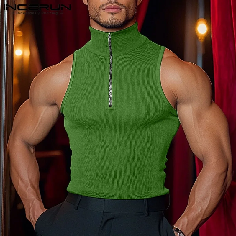 Men Tank Tops Solid Coior Tops Sleeveless Summer Zipper Men's Clothing Fashion Party Streetwear Tops Tee Oversize S-3XL