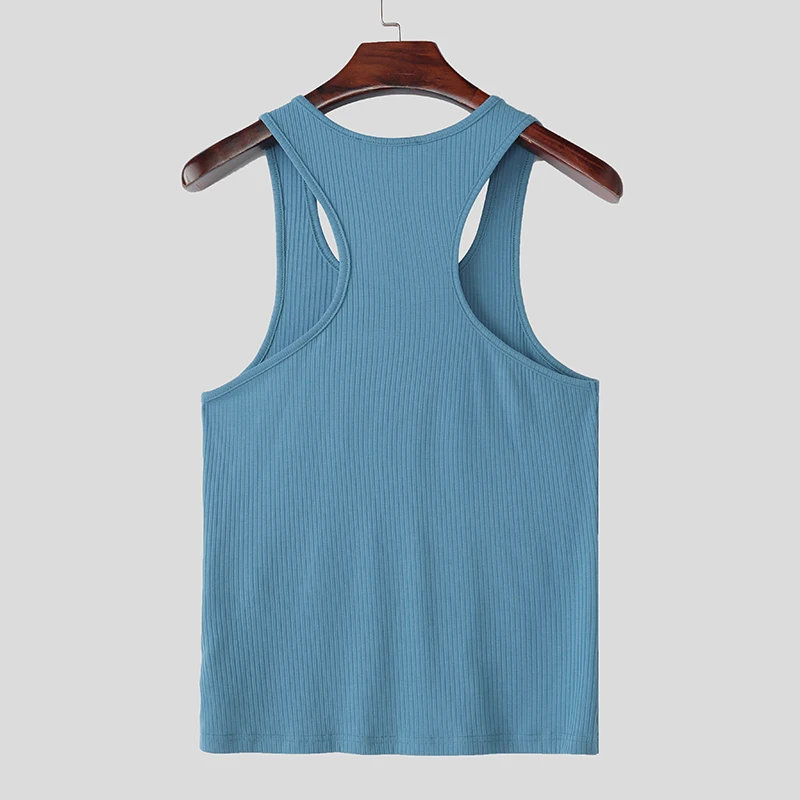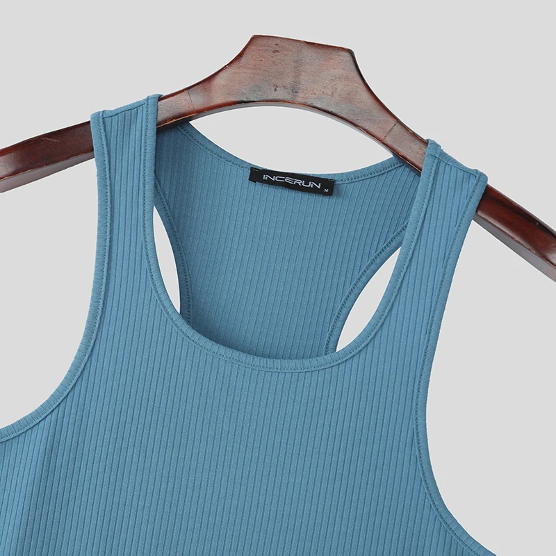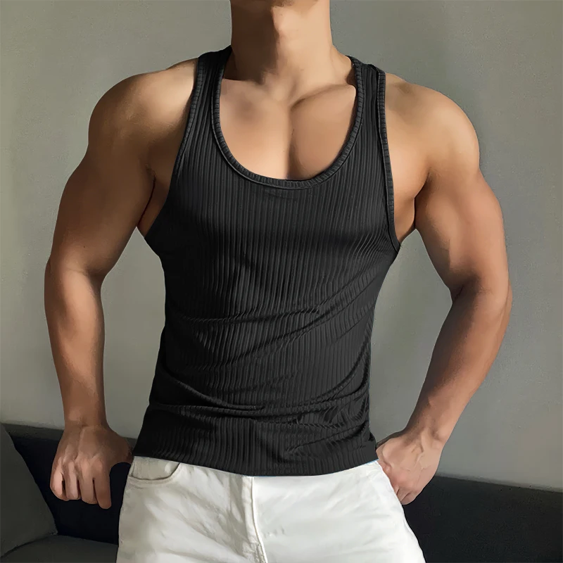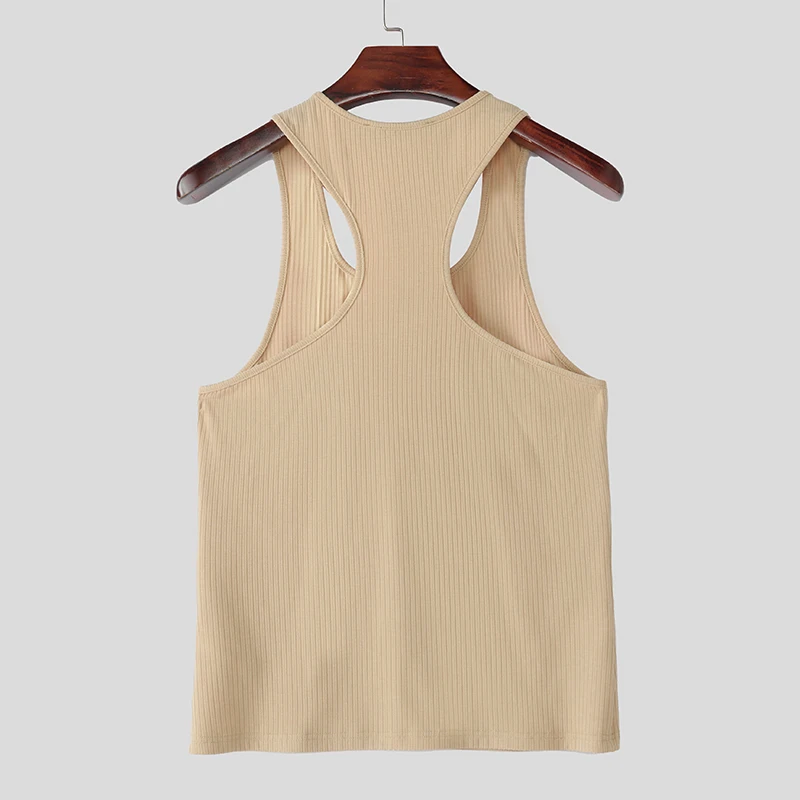 Men Tank Tops Solid Color Square Collar Sleeveless Fashion Male Vests Summer Streetwear 2025 Skinny Men Clothing S-3XL