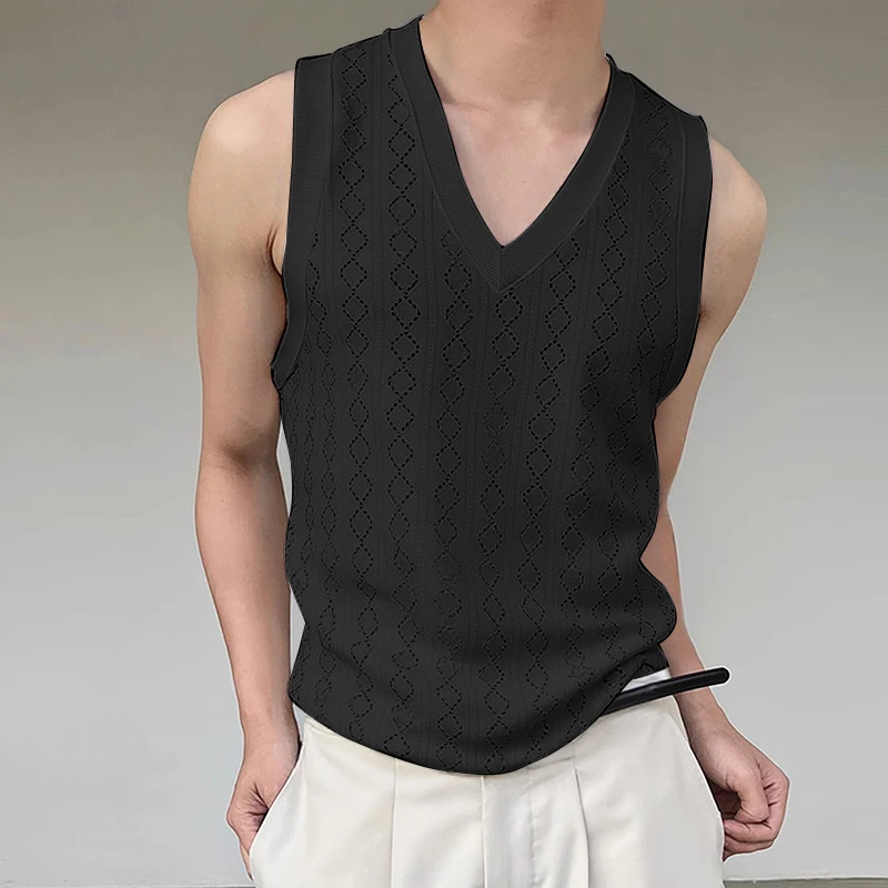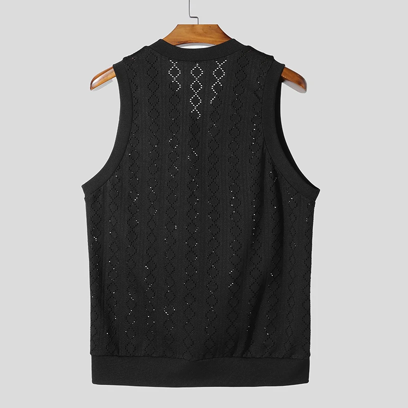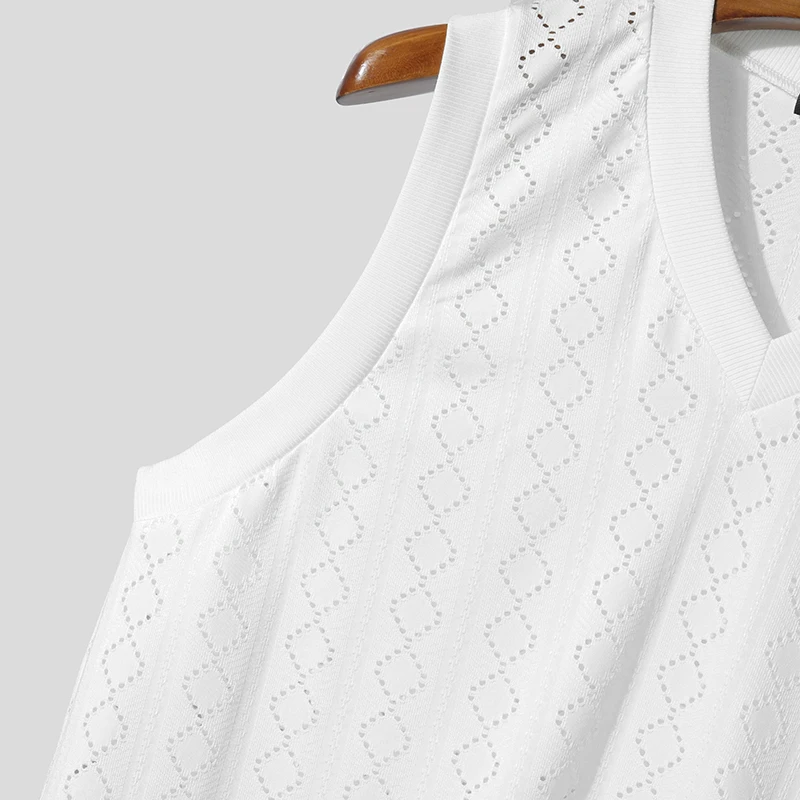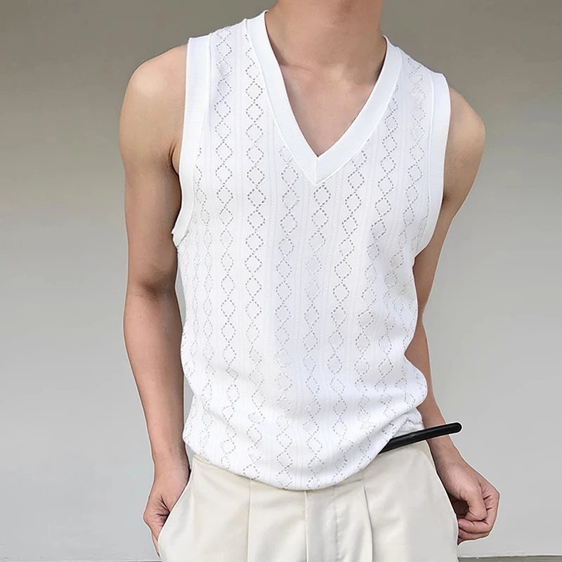 Men Tank Tops V Neck Sleeveless Summer Male Vests 2025 See Through Tops Breathable Fashion Men Clothing Streetwear S-5XL