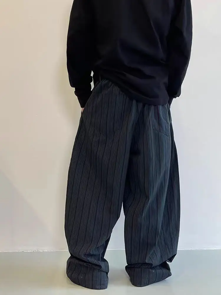 Men Trendy American Vintage Striped Oversized Streetwear Baggy Pants Y2K Harajuku Hip Hop Casual Wide Leg Trousers Pantalones