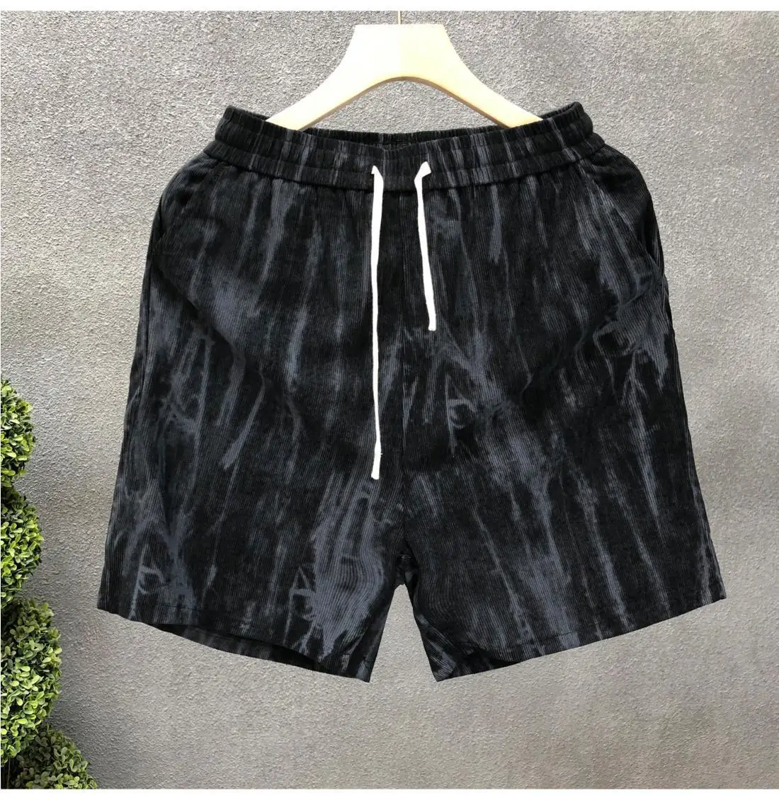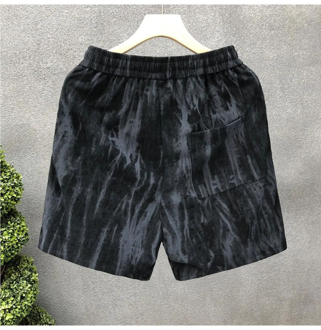 Men's Casual Tie-dye Shorts Loose Trend Oversized Corduroy Pocket Sports Cargo Street Shorts Drawstring Fashion Jogging Pants
