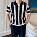 Men's Clothing Urban Fashion Striped Knit Polo Shirt Casual Business Slim Short Sleeve T-shirt Chic Hollow Out Breathable Tops