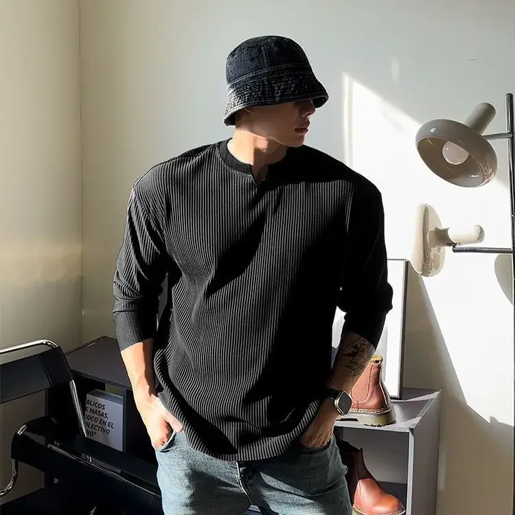 Men's Clothing V-Neck Loose Fit Long Sleeve T-Shirt Spring and Autumn New Arrival Fitness Muscular Fit Sportswear Comfortable