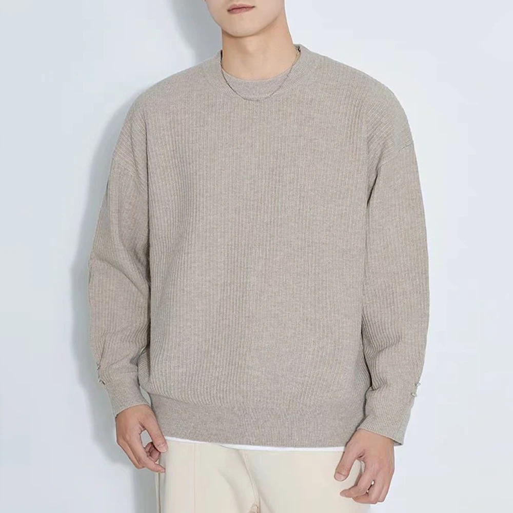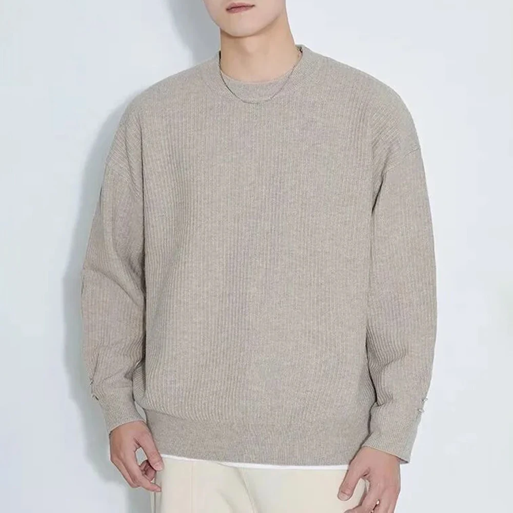 Mens High-End Long-Sleeved Round-Neck Sweater Autumn And Winter New Lazy Style Knitted Sweater Bottoming Inner Warm Tops Men